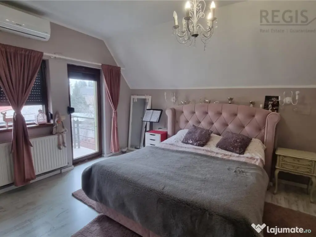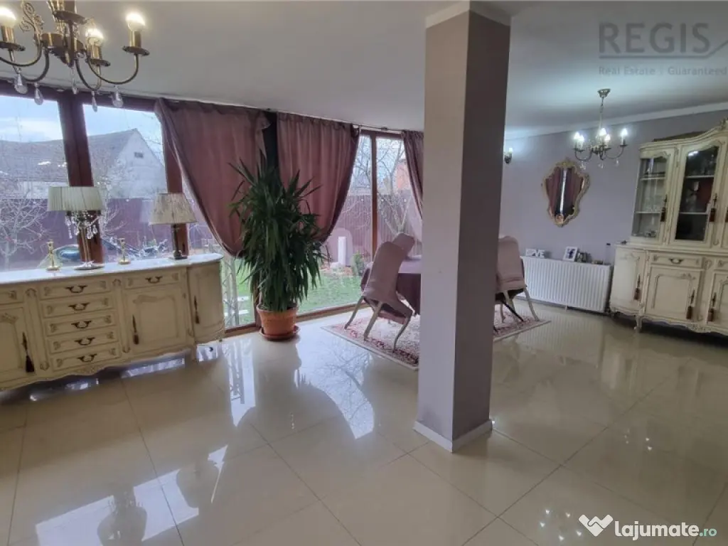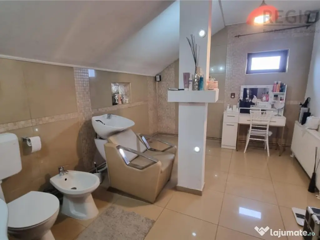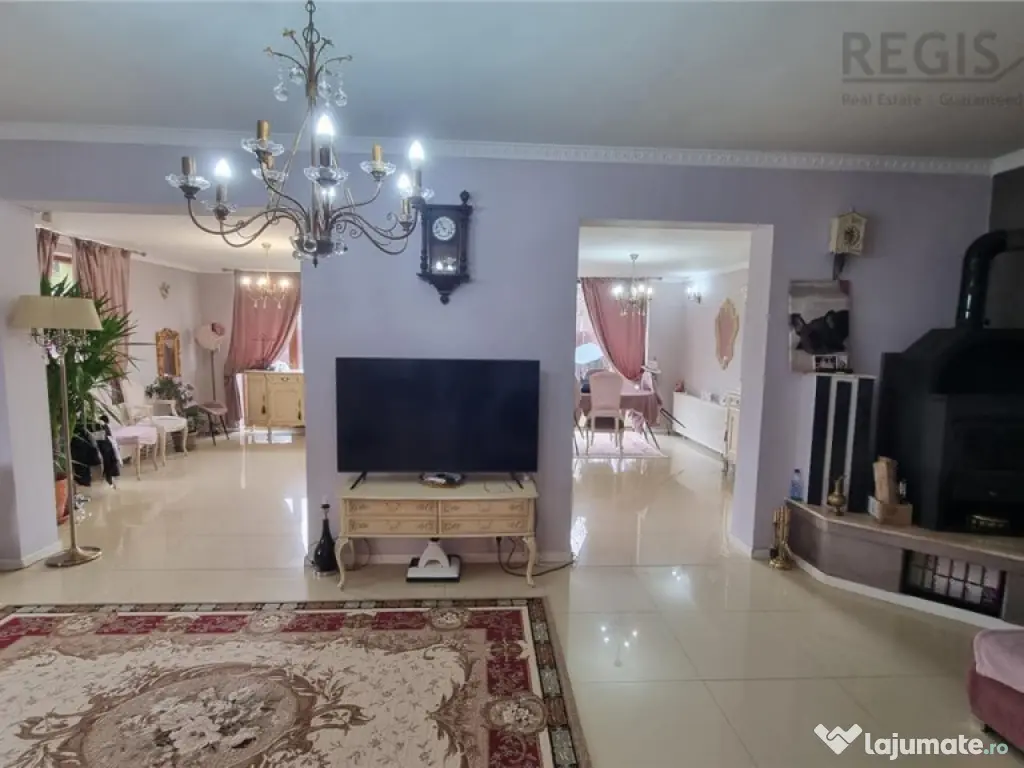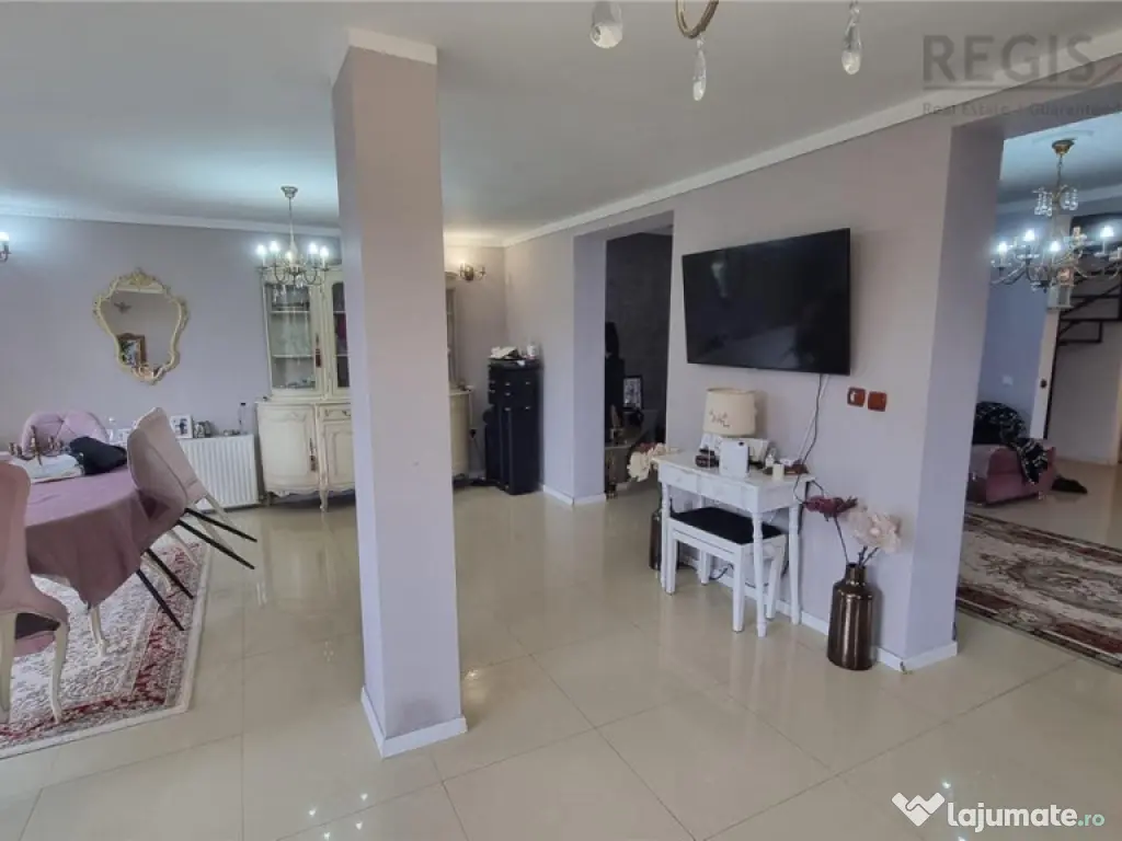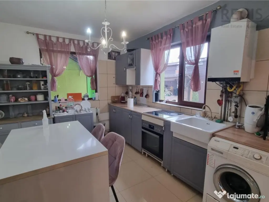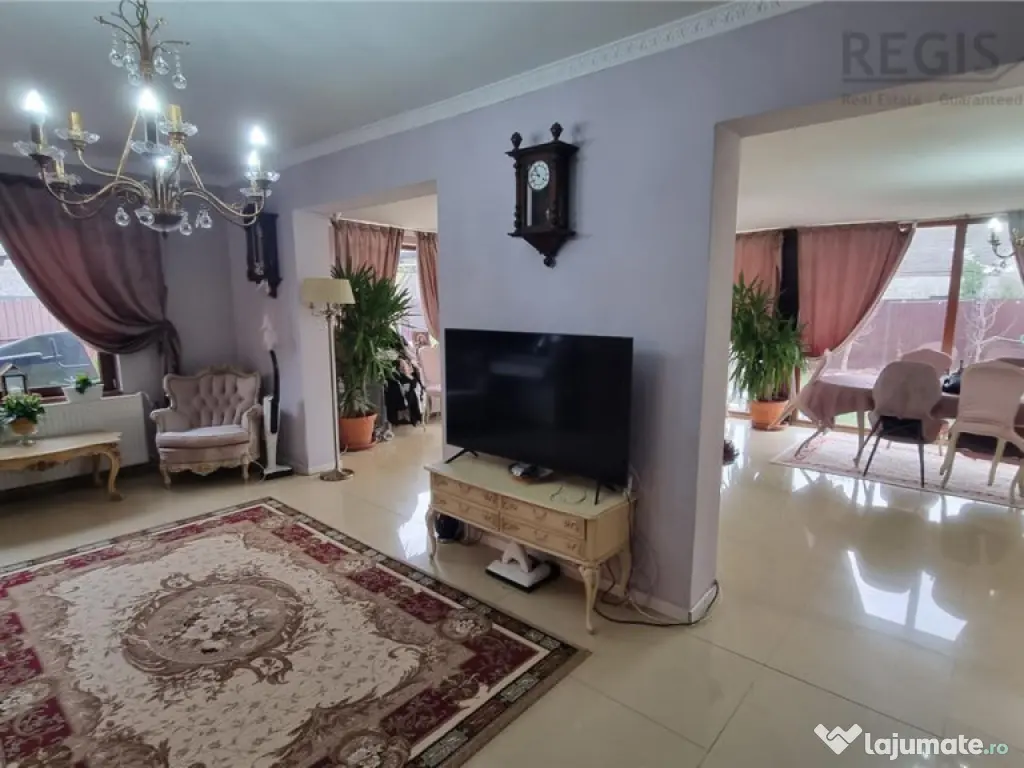 ID Intern: 6731 Regis Imobiliare va prezinta spre vanzare o proprietate completa, gandita pentru confort real si costuri de intretinere reduse, situata pe un teren de 445 mp, cu 250 mp utili si 300 mp construiti, deschidere la strada si curte complet amenajata.Construita in 2011 din BCA, cu izolatie termica si finisaje exterioare din piatra de rau, casa ofera un echilibru foarte bun intre rezistenta, eficienta si aspect. Tamplaria din lemn cu geam termopan si materialele folosite la interior, gresie si parchet, completeaza un spatiu bine intretinut si pregatit pentru locuire.Compartimentarea este aerisita si functionala, cu 3 camere, doua bai, living si dining generos, bucatarie separata, dressing si camera de depozit. Exista si balcon, iar fiecare spatiu este gandit pentru utilizare practica, fara pierderi inutile de suprafata. Unul dintre cele mai importante avantaje ale acestei proprietati este eficienta costurilor. Casa este dotata cu panouri solare, centrala pe paleti si semineu pe lemne, ceea ce reduce semnificativ cheltuielile lunare la incalzire si apa calda. In plus, existenta unui put propriu de apa elimina dependenta totala de reteaua publica si reduce suplimentar costurile de consum. Practic, vorbim despre o locuinta in care cheltuielile sunt optimizate pe termen lung, un aspect extrem de important in contextul actual. Curtea este complet amenajata si include foisor si zona de gratar, ideala pentru relaxare sau socializare, precum si o zona verde in spate care ofera intimitate. In fata exista acces auto si 4 locuri de parcare in curte, un avantaj clar pentru o familie sau pentru activitate mixta.Un beneficiu major al acestei proprietati este faptul ca in pret este inclus si un spatiu separat amenajat pentru laborator de cofetarie, ceea ce ofera oportunitate directa de business sau venit suplimentar, fara investitii initiale.Proprietatea este situata intr-o zona accesibila, aproape de supermarket, mall la 5 minute, scoli si statii de autobuz, oferind acces rapid la tot ce este necesar in viata de zi cu zi. Aceasta casa nu inseamna doar spatiu, ci si control asupra costurilor, confort si oportunitate, fiind potrivita atat pentru locuire, cat si pentru dezvoltarea unei activitati proprii. Comisionul agentiei 2% plus TVA Iris Berbinschi agent imobiliar Număr Băi: 2 Posibilitate parcare: Da Nr. locuri parcare: 4 Curent Apă Gaz