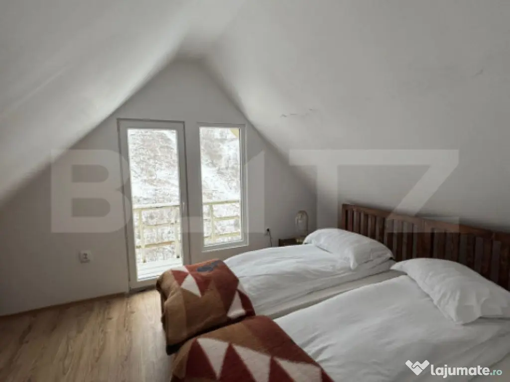 Blitz propune spre vânzare proprietate de 5 camere, 2 bai, 2 terase, jacuzzi si sauna, cu teren intravilan de 850 mp, teren liber 780 mp, ideală pentru locuință de vacanță. Imobilul beneficiază de utilități esențiale: ✔ Apă potabilă din rețeaua publică, apa din put forat și din izvor, ✔ Curent electric, curent monofazic și trifazic (avem 2 contoare) ✔ Canalizare prin fosă septică. ✔ Incălzirea prin termosemineu și calorifere ✔Apa calda prin boiler. Situata in Muntele Baisorii, cu view super, in proximitatea partiei Buscat. Actele sunt la zi și construcția este cu acte făcută. Pentru mai multe informații și pentru programarea unei vizionări, vă stăm cu drag la dispoziție! Cod ofertă / ID BLITZ: P169169 Id intern: P169169 Număr niveluri imobil: 2 Număr Băi: 2 Curent Apă