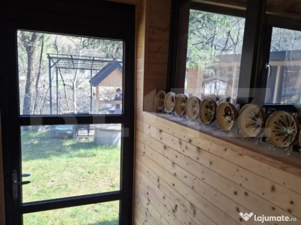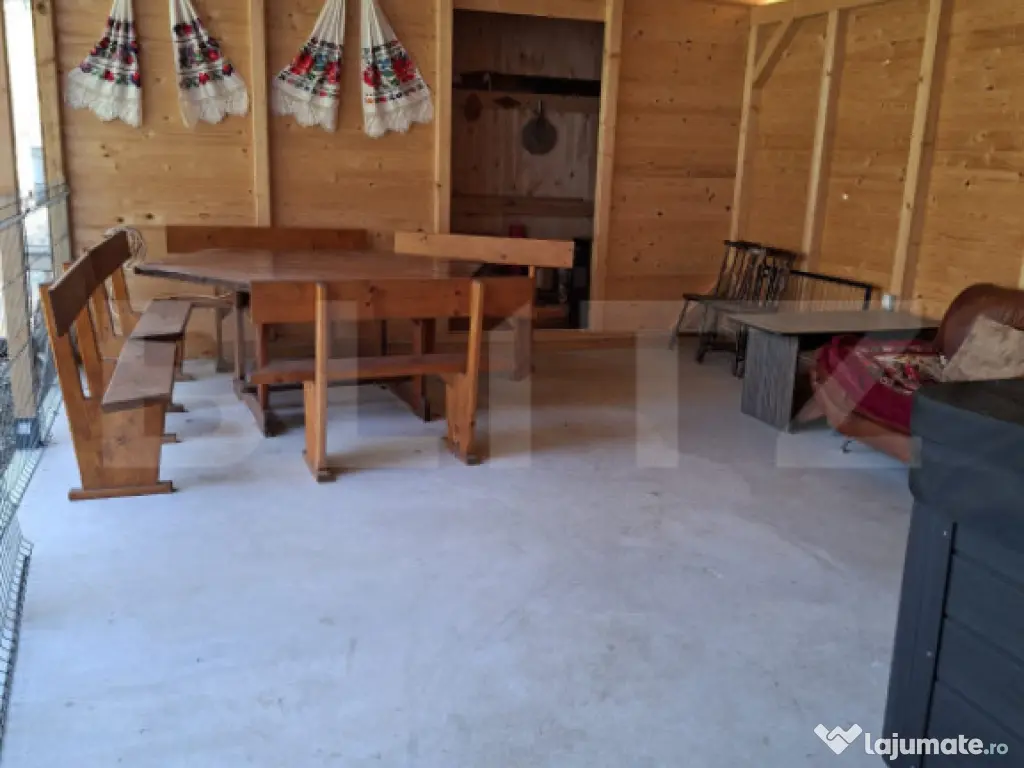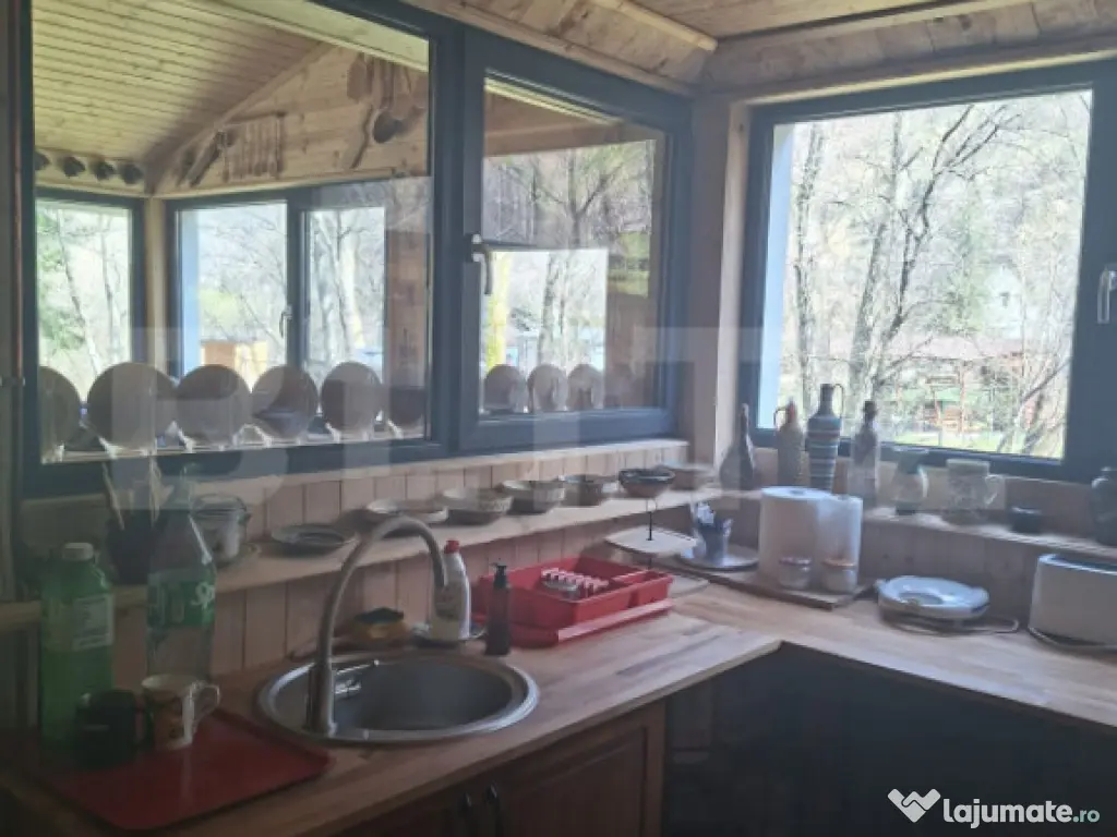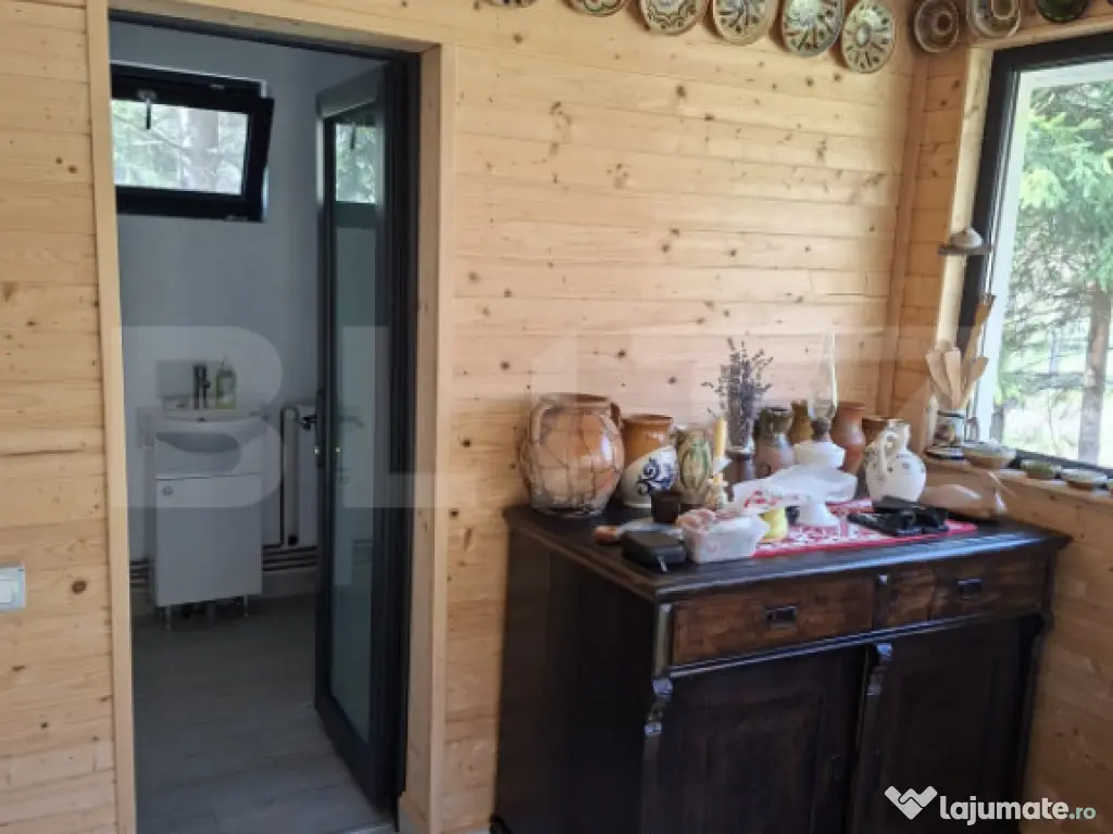 BLITZ oferă spre vânzare o cabană situată în Localitatea Dealu Mare, Comuna Mărișel, la o distanță de circa 40 km de Cluj-Napoca, 5 km de coada Lacului Tarnița și 11 km de pârtia de ski, pe malul râului Someșul Cald. Proprietatea dispune de o suprafață utilă de 100 mp, amplasată pe un teren de 768 mp, regim de înălțime P+M. Compartimentare:  Parter: terasă spațioasă închisă cu geamuri termopan, living generos, bucătărie mobilată și utilată, baie;  Mansardă: 3 camere. Construcția este realizată din lemn și cărămidă, pe fundație din piatră, șarpantă din lemn, cu izolație termică. Casa se vinde mobilată și utilată, cu instalații electrice și sanitare, încălzire centralizată cu termoșemineu pe lemne și calorifere, apă curentă din făntănă cu hidrofor, canalizare cu fosă septică, acces TV și internet prin WiFi, aspirator, cafetieră, cuptor cu microunde, frigider, sandwichmaker, toaster. Exterior: terasă de 40 mp prevazută cu loc de luat masa, un jacuzzi electric cu hidromasaj capacitate de 6 persoane, foișor pentru pregătit ceaun și grătar, locuri de parcare, împrejmuire exterioară. Poate fi considerată o oportunitate de achiziție pentru investiție într-o zonă căutată în orice anotimp pentru închiriere, fiind amplasată într-o zonă cu înalt potențial turistic. Vă așteptăm cu drag să ne contactați pentru mai multe detalii și să organizăm o vizionare. Cod ofertă / ID BLITZ: P169590 Id intern: P169590 Număr niveluri imobil: 1 Număr Băi: 1 Nr. locuri parcare: 2 Curent Apă