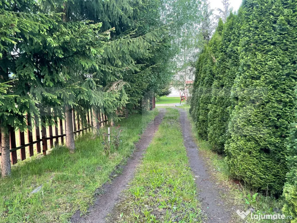 Proprietatea este amplasată pe un teren generos de 2460 mp, oferind posibilitatea construirii mai multor cabane sau amenajării unui spațiu de relaxare extins.