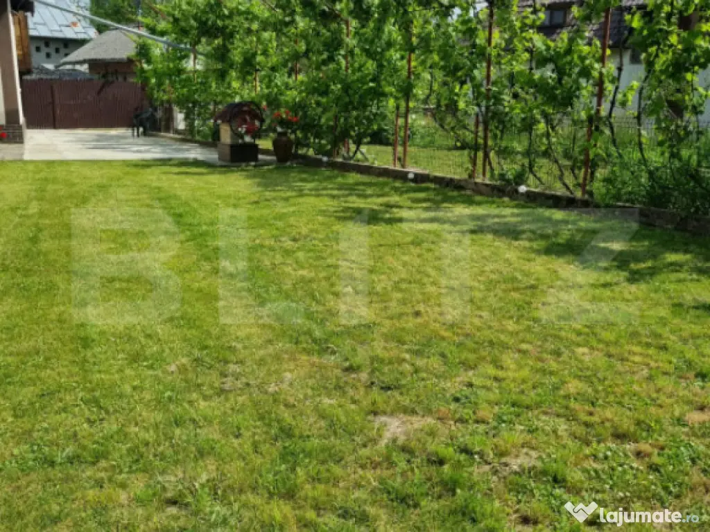 n plus, proprietatea oferă un spațiu excelent pentru relaxare în aer liber: o terasă generoasă, o bucătărie de vară, un dormitor suplimentar și două cămări. Curtea este amenajată cu gazon, viță de vie, pomi fructiferi și zone umbrite – perfectă pentru grătare, lectură sau timp petrecut cu cei dragi în natură.