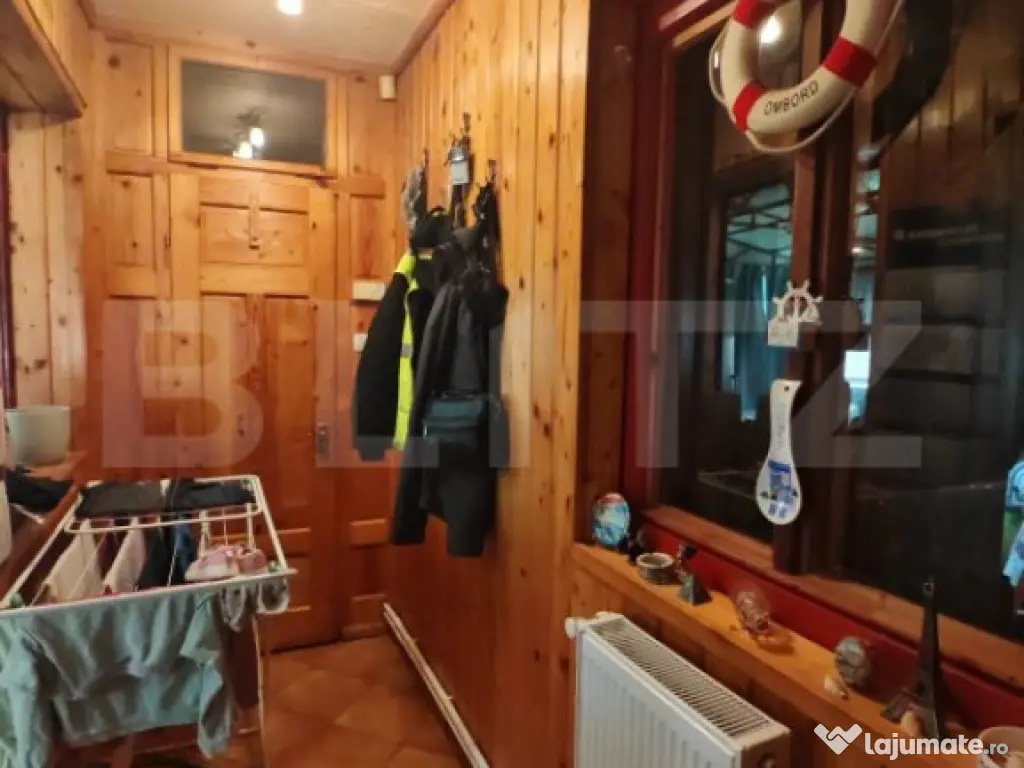 Blitz va prezinta o casă de vacanță cochetă, complet utilată, în mijlocul naturii – la doar câțiva kilometri de Bran. Situată într-o zonă liniștită, la doar 6 km de Castelul Bran, 3 km de Zărnești și 5 km de Râșnov, această casă de vacanță îmbină perfect confortul cu farmecul rustic. Construită în anul 2000, proprietatea are o suprafață locuibilă de 45 mp și este ideală pentru relaxare în mijlocul naturii sau ca investiție turistică. Compartimentare: - Living open-space cu bucătărie – spațiu cald și primitor, cu pereții placați în lambriu de lemn - Dormitor confortabil - Baie complet utilată - Terasă închisă cu tâmplărie termopan – transformată în cameră de zi suplimentară - Hol și cameră tehnică (centrală termică electrică 380V) - Bucătărie de vară complet echipată Facilități și dotări: - Încălzire prin centrală termică pe curent trifazic (380V) - Două sobe din teracotă funcționale, cu lemne asigurate pentru întreaga iarnă – pentru siguranță în caz de pană de curent - Supraveghere video - Fosa septică proprie - Curte spațioasă și verde, cu zonă de grătar din cărămidă - Grădină de zarzavaturi cu solar – pentru cei pasionați de cultivarea legumelor - Padoc pentru câine - Două magazii exterioare echipate cu unelte de lăcătușerie, motocultor 7CP, freză de zăpadă 4CP, drujbă Husqvarna etc. Această proprietate este ideală pentru cei care doresc să se bucure de natură, liniște și aer curat, dar cu toate facilitățile moderne la îndemână. Apropierea de atracțiile turistice din zonă (Castelul Bran, Plaiul Foii, Râșnov) o face potrivită și pentru închiriere în regim turistic. Cod ofertă / ID BLITZ: P146769 Id intern: P146769 Număr Băi: 1 Nr. locuri parcare: 3 Curent Apă