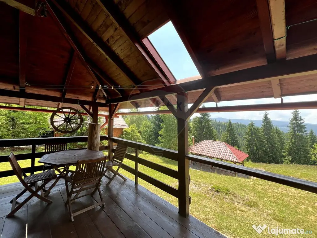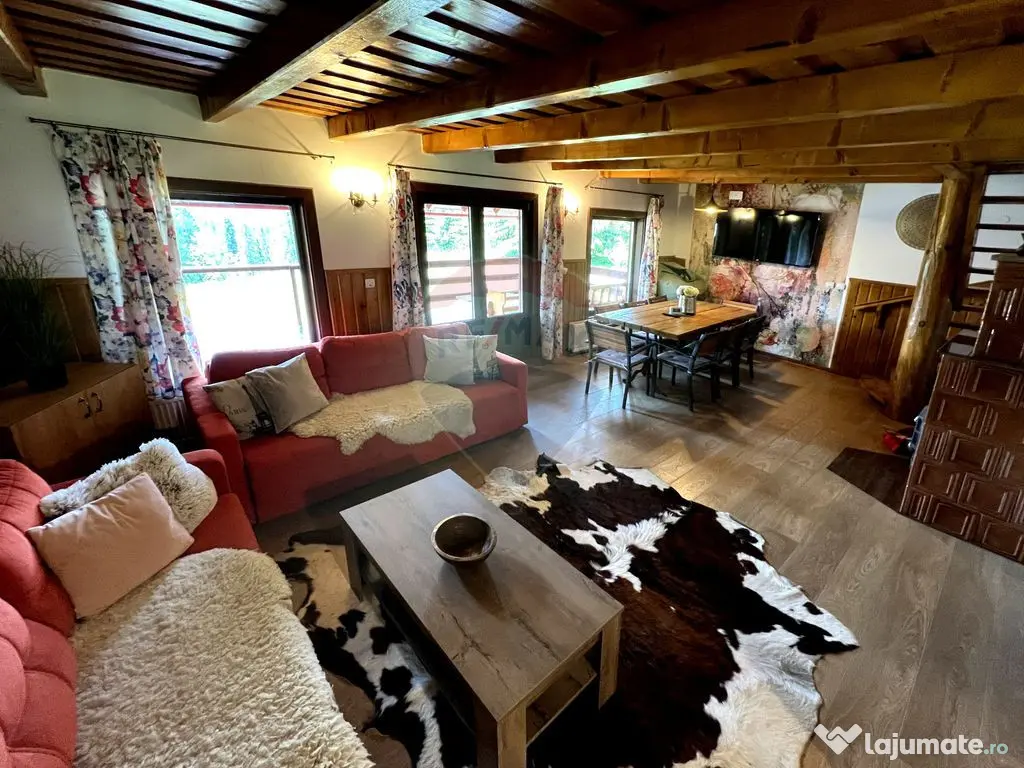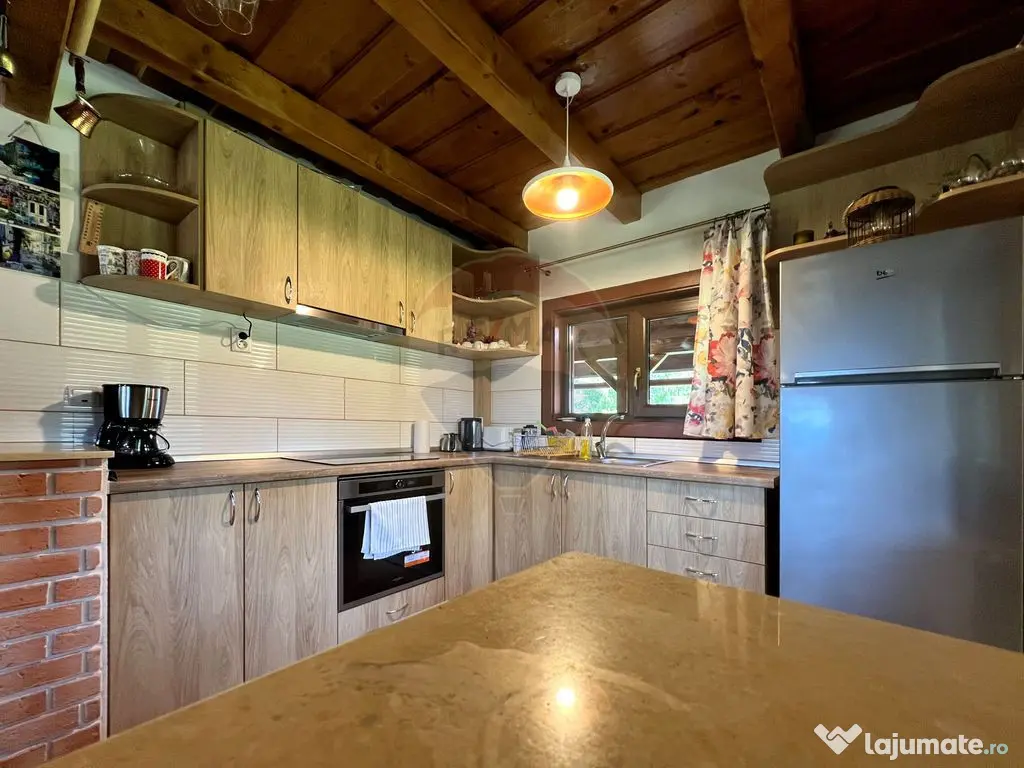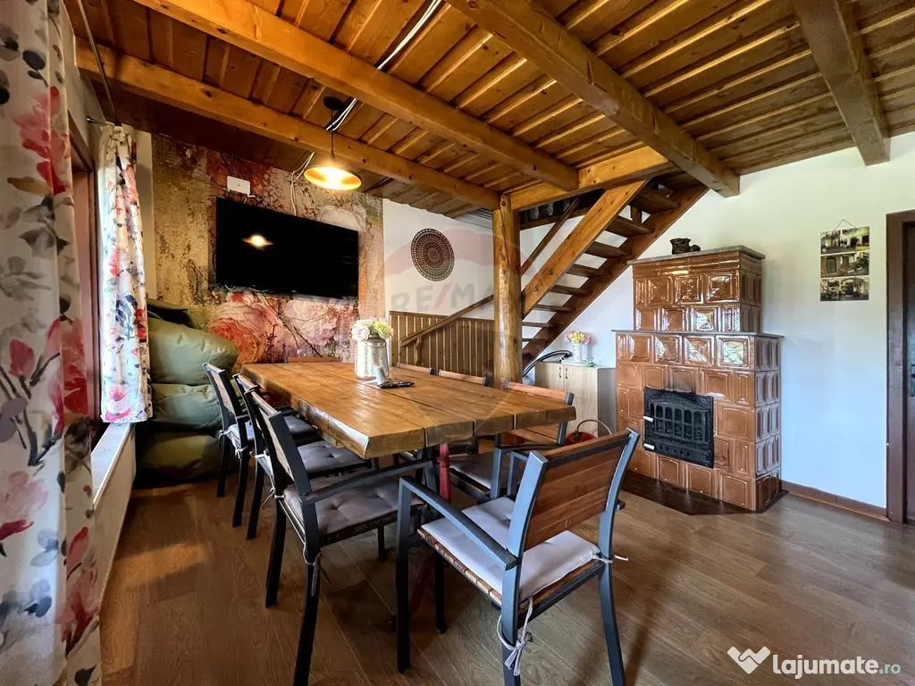 Vă oferim spre achiziție o casă construită într-o locație superbă, pe un teren plan în zona casei, în coborâre ușoară pe versant, cu orientare sudică și un front de 50 m la drumul de acces. Dacă vă plac activitațile în aer liber, sau doriți un business gata funcțional în AirBNB aceasta este soluția ideală. Număr niveluri imobil: 1 Număr Băi: 2 Posibilitate parcare: Nu Curent Apă Încălzire