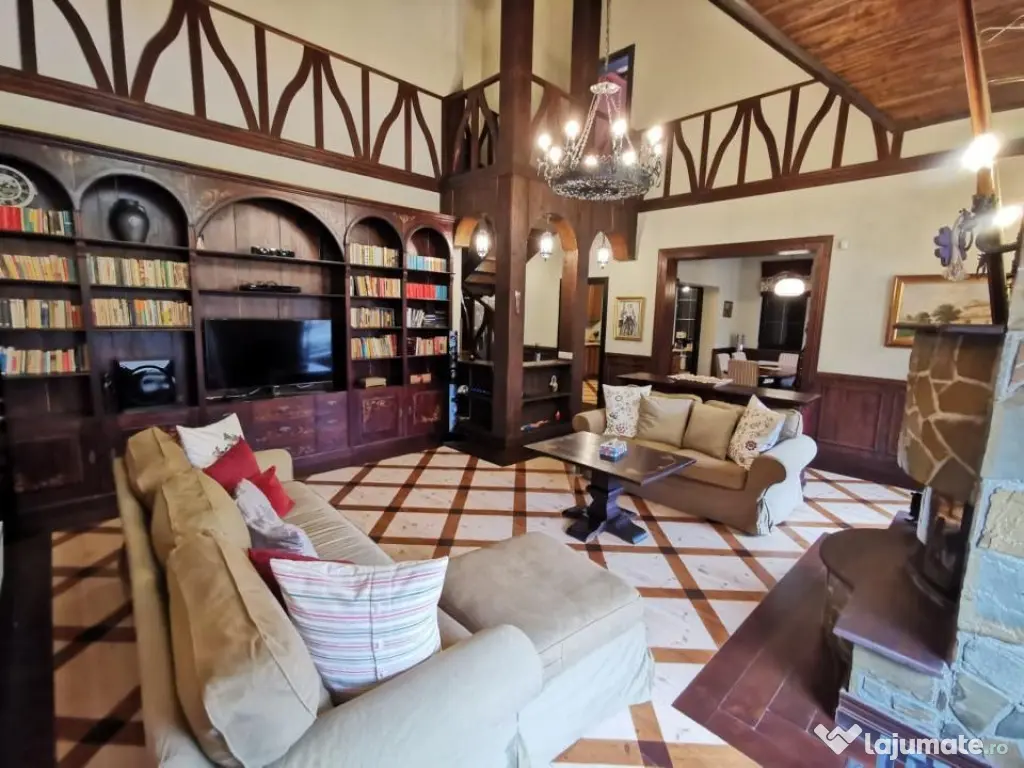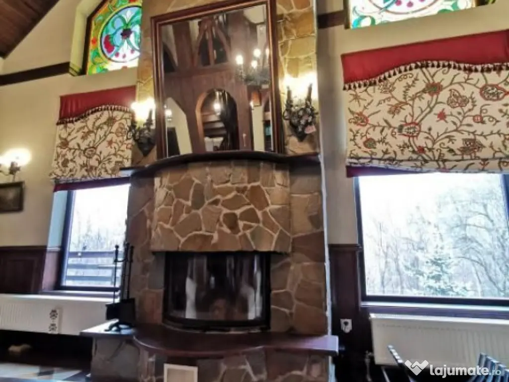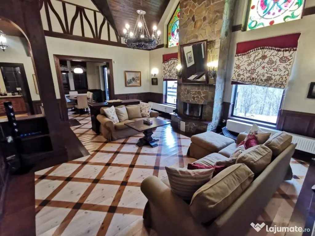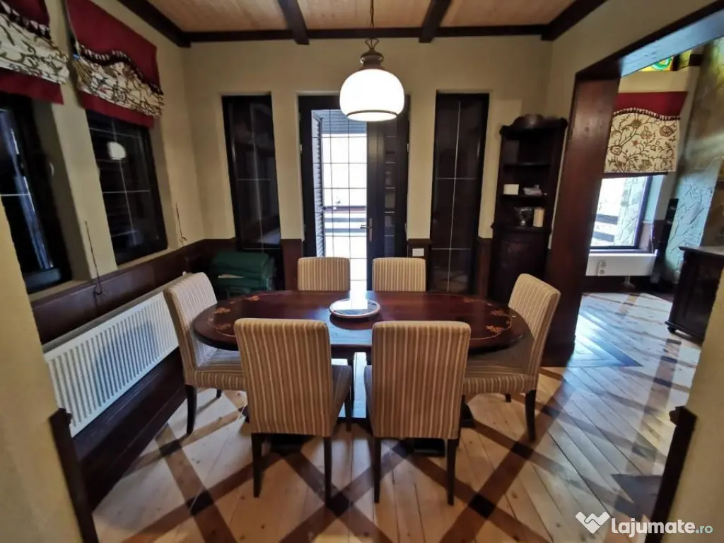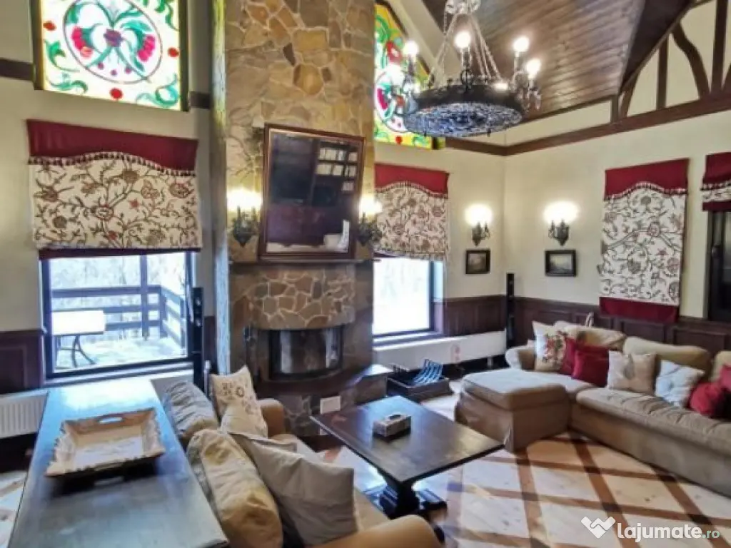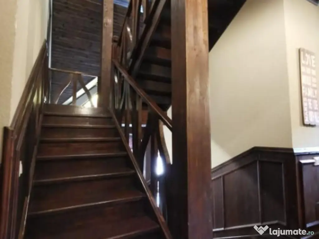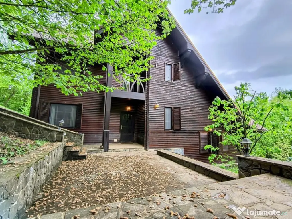 Top Home Advisors va propun spre vanzare un imobil compus din P+1+M, 247 mp utili, living, dining, bucatarie, terasa, 5 dormitoare , 2 gr sanitare, anexa 90 mp, amenajata pentru spatiu de recreere cu bar, masa de biliard/ pocher, gr sanitar, sauna uscata/umeda, spatiu tehnic unde gasim centrala pe lemne sau peleti, hidrofor, bazin apa si pe acoperis panouri solare pentru apa calda. Terenul este in suprafata de 4042 mp, curte libera 3700 mp, amenajata cu alei din beton si piatra. Casa este constrita din lemn cu fundatie din beton armat placat cu piatra naturala. Aceasta casa de vacanta se afla intr-o zona linistita si pitoreasca, oferind intimitate si relaxare. Cu o arhitectura deosebita si dotari moderne, aceasta proprietate este ideala pentru petrecerea vacantei sau a timpului liber alaturi de familie si prieteni. Nu ratati sansa de a deveni proprietarul acestei case de vacanta exceptionale! Pentru mai multe informatii si programari pentru vizionare, va asteptam sa ne contactati Vizionarea se face doar în baza semnarii unui acord de vizionare conform codului civil, art 2.096-2.102. Va multumim pentru intelegere. Broker exclusiv. Comision standard Program vizionari L-V 9-18. Număr niveluri imobil: 1 Număr Băi: 3 Posibilitate parcare: Da Nr. locuri parcare: 5 Curent Apă Canalizare Încălzire