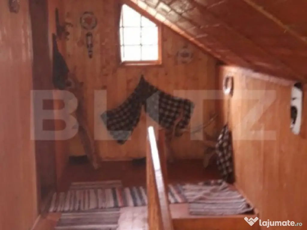 Blitz ofera spre vânzare o casă de vacanță situată în localitatea Piatra Fântânele, ideală pentru un refugiu departe de agitația cotidiană. Proprietatea este alcătuită din: - Parter: Bucătărie, living, hol și baie, într-un spațiu generos și funcțional. - Etaj: Două camere spațioase, perfecte pentru a oferi confort pe timpul nopții. Casa beneficiază de fundație solidă din piatră și beton, iar construcția a fost realizată în 2007. Este dotată cu instalație electrică, care necesită doar conectarea la rețeaua locală (legare la stâlp). Alte caracteristici ale proprietății: - Fosa septică - Apă prin cadere - Teren liber intabulat cu suprafața de 450 m² - Proprietatea este înregistrată la primărie Locația oferă liniște și aer curat, fiind ideală pentru relaxare și escapade de weekend. Nu ratați ocazia de a deține o casă de vacanță în acest colț pitoresc al județului. ID BLITZ: P138645 Cod ofertă / ID BLITZ: P138645 Id intern: P138645 Număr niveluri imobil: 1 Număr Băi: 1 Nr. locuri parcare: 2 Utilități: Apă