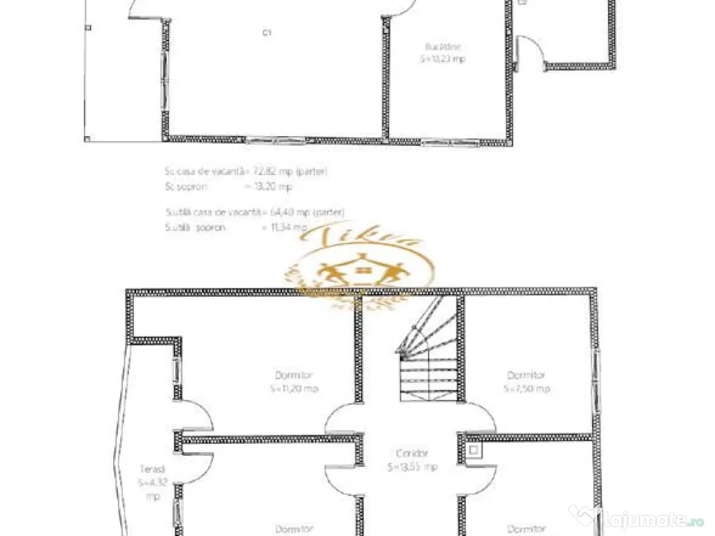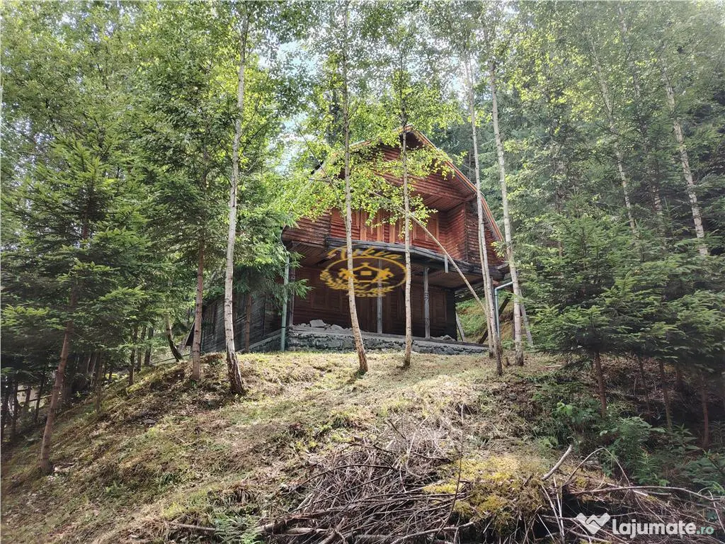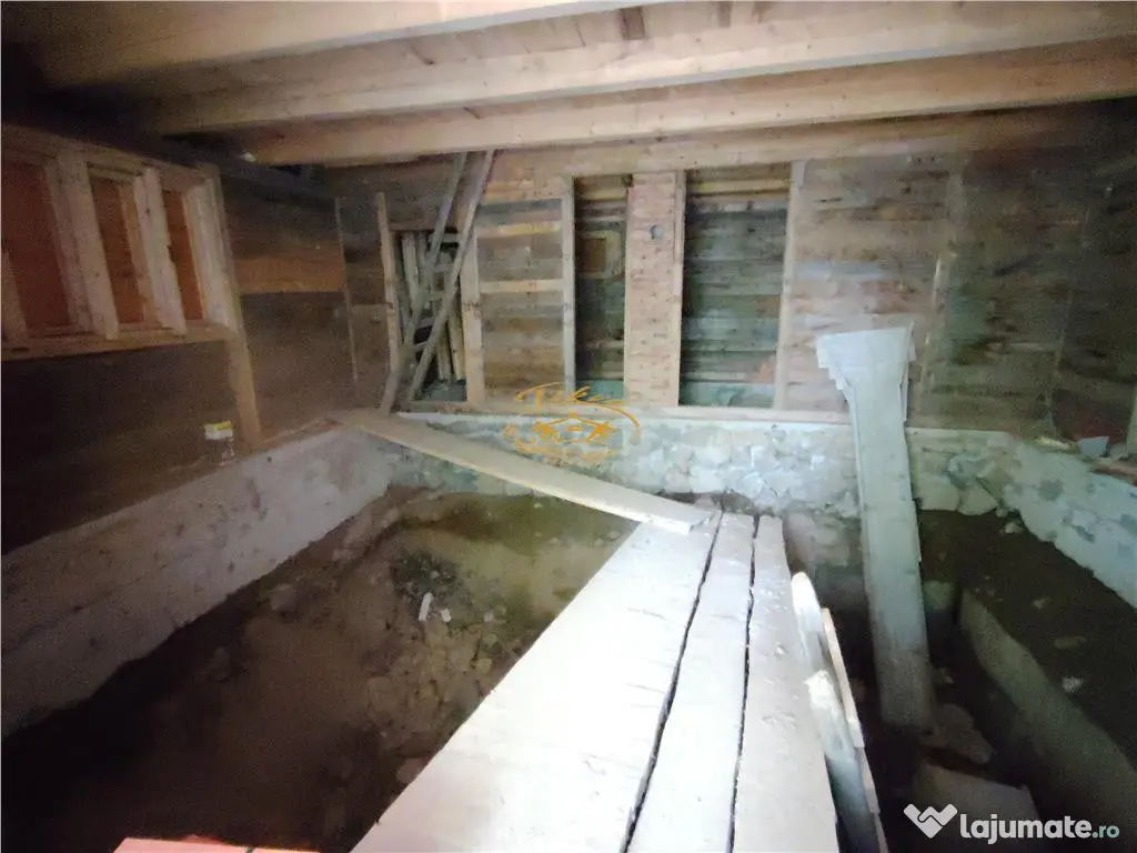 Va propunem spre vanzare casa de vacanta in apropiere de orasul Gheorgheni, jud. Harghita, situata in zona Magasbuuml;kk-KM 5. Imobilul este situat intr-o zona linistita, totusi destul de aproape (la cca. 1 km) de DN12C, dintre Gheorgheni si Lacu Rosu. Casa are regimul de inaltime de S P M, cu amprenta la sol de 72,8 msup2; (suprafata totala construita 146 msup2;, suprafata utila 113 msup2;), terenul aferent avand suprafata de 1153 msup2;. Compartimentare: la subsol este amenajata o pivnita aproape pe intreaga suprafata a casei; la parter living, bucatarie, camara si baie; la mansarda hol si 4 dormitoare. La parter exista, de asemenea, o terasa acoperita avand suprafata de 12,9 msup2;, iar la mansarda o terasa de 4,32 msup2; cu acces din doua camere. Casa a fost construita in 2000 din lemn pe fundatie din beton si piatra, fiind acoperita cu tigla de beton. Este nefinalizata, sunt montate ferestrele si usa de intrare (din lemn fara termopan), usile interioare sunt fabricate, dar nu sunt montate, pana la finalizare fiind necesare alte lucrari (montare podea de la parter, izolare, finisare etc.). Casa nu are sistem de incalzire, dar dispune de un cos de fum. Proprietatea nu dispune de utilitati publice, racordarea la reteaua de electricitate se va face in viitorul apropiat (autorizatia a fost acordata), reteaua de apa si canalizare nu sunt disponibile in zona (alimentarea cu apa poate fi asigurata prin fantana forata, canalizarea prin fosa septica). Pe teren, langa casa, se gaseste o magazie din lemn. Pret: 29.900 EUR - negociabil. Număr Băi: 1 Comision cumpărător: 0% Utilități: Curent