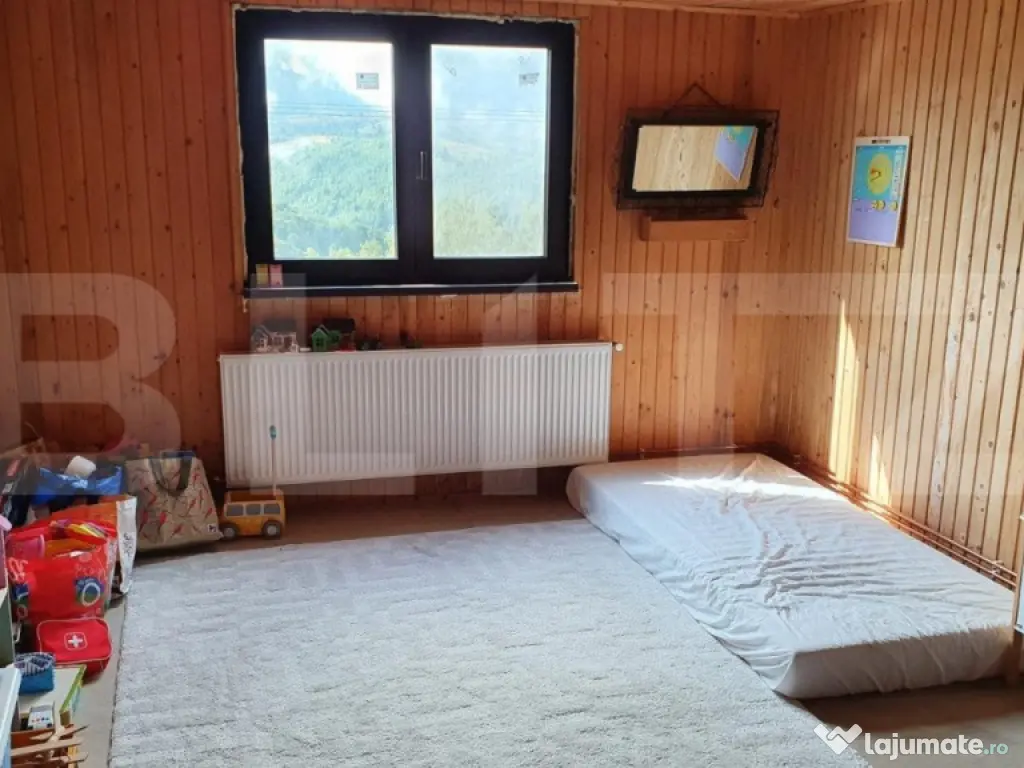 Blitz vă propune o oportunitate rară de a achiziționa o bijuterie montană în inima Moieciului! Această fermecătoare casă de vacanță în renovare vă așteaptă să o transformați în propriul vostru refugiu de vis. Cu o suprafață utilă impresionantă de 320 de metri pătrați și un teren generos de 1789 de metri pătrați, această proprietate oferă nu doar spațiu, ci și potențial nelimitat. Construită în anul 1996, casa dispune de 5 camere spațioase, 2 băi și o bucătărie care poate deveni inima casei dvs. Datorită unei camere tehnice și a unei camere de depozitare, toate necesitățile dvs. sunt îndeplinite cu ușurință. Un garaj și o cămară adaugă la utilitatea acestei proprietăți. Priveliștea de la o altitudine de 1100 de metri este cu adevărat uluitoare, oferind o panoramă încântătoare spre Parcul Natural Bucegi și Piatra Craiului. În timp ce savurați un pahar de vin pe terasa privată, veți fi încântați de spectacolul oferit de natură. Cu toate facilitățile necesare pentru confortul modern, casa este echipată cu 2 fose septice și beneficiază de o monitorizare constantă prin intermediul a 8 camere video și alarme. Aceasta vă oferă nu doar siguranță, ci și liniștea deplină de a vă bucura de această oază montană. Aflată la doar 10 km de Bran si 2 km de Fundata, proprietatea beneficiază de proximitatea faimoasei cetăți și a zonei înconjurătoare. Cu un potențial vast pentru a deveni locul vostru de retragere în natură, această casa de vacanță în renovare este o alegere inspirată pentru cei care caută autenticitate și conexiune cu peisajul montan. Cu un pic de creativitate și atenție, această proprietate va deveni, fără îndoială, locul unde veți crea amintiri de neuitat. Cod ofertă / ID BLITZ: P99474 Id intern: P99474 Număr niveluri imobil: 2 Număr Băi: 2 Nr. locuri parcare: 5 Curent Apă