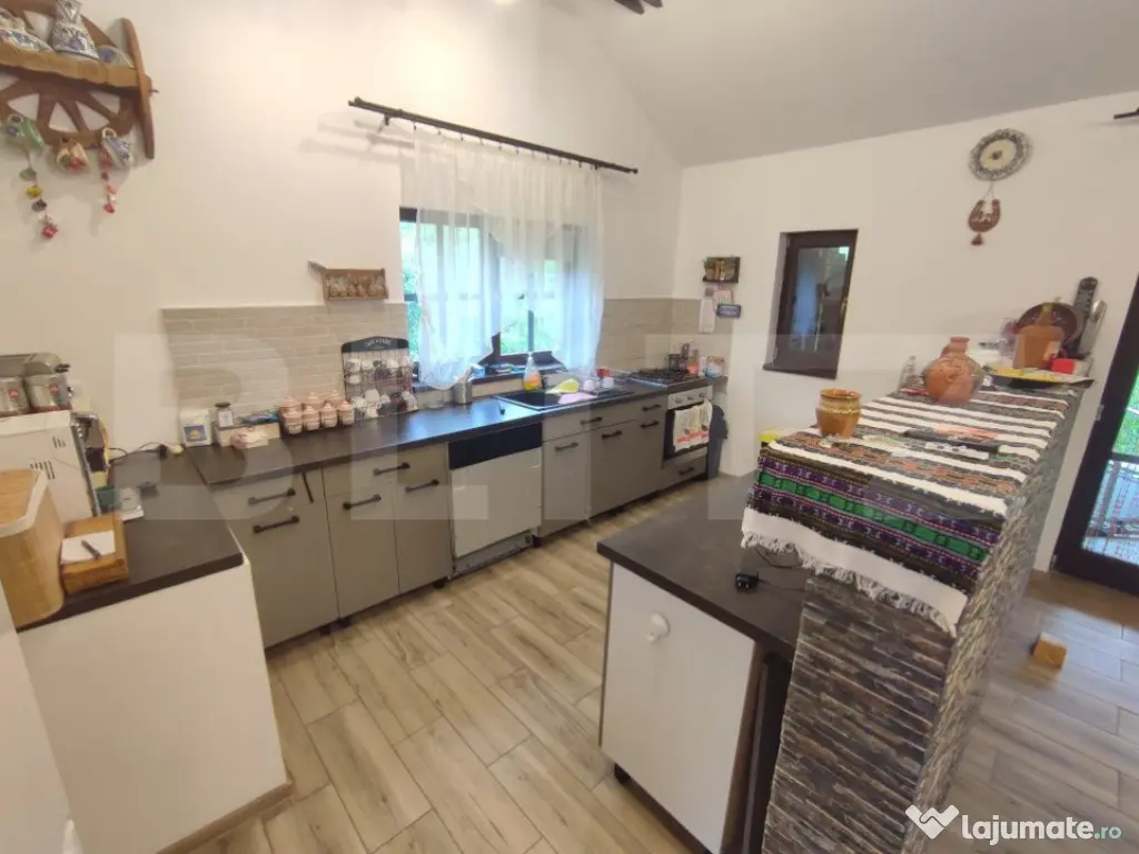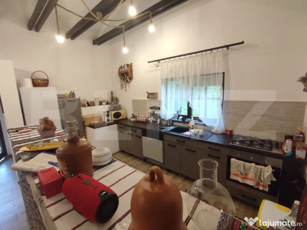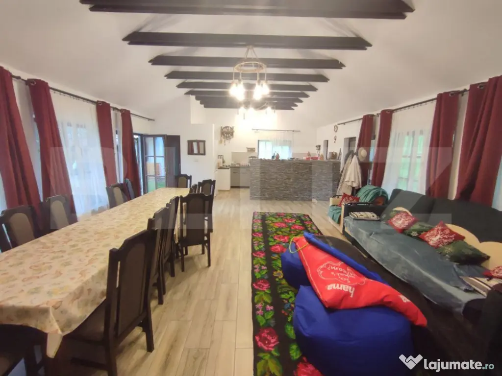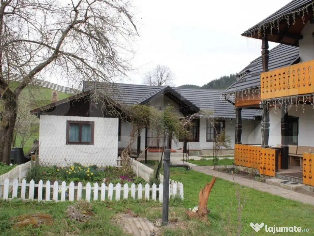 Blitz va propune această casă de vacanță situată în inima pitorească a Stulpicaniului. Imobilul este o adevărată oază de relaxare, oferind toate facilitățile moderne pentru un trai confortabil și liniștit. Cu un teren intravilan generos de 2000 mp, această proprietate reprezintă un echilibru perfect între natura serenă și confortul modern. Casa Principală Construită din zidărie lemn, această casă impresionează prin arhitectura sa tradițională combinată cu elemente moderne, fiind complet modernizată în anul 2022. Suprafața Construită Desfășurată: 288 mp Configurație: Parter + Mansardă Camere: 7 camere spațioase, ideale pentru familii numeroase sau grupuri de prieteni Băi: 5 băi moderne, dotate cu toate facilitățile necesare Camera Centralei Aceasta se află într-o anexă separată și are o suprafață de 20 mp, asigurând o încălzire eficientă prin centrala cu gazeificare cu lemne și calorifere. Anexe Apartament: Configurație: 2 dormitoare, hol și baie, ideal pentru oaspeți sau pentru a fi folosit ca spațiu de locuit adițional Salon și Terasă: Suprafață salon: 6x11 m Dotări: Bucătărie complet echipată, baie, capacitate de 20 de persoane Terasa acoperită: 32 mp, perfectă pentru evenimente în aer liber, dotată cu grătar și loc de luat masa Bucătărie de vară complet modernizată, ideală pentru prepararea meselor în timpul verii Facilități Apa curentă de la comuna și hidrofor Curent Electric Canalizare: Racordată la rețeaua comunei Încălzire prin centrală cu gazeificare cu lemne și calorifere, asigurând o temperatură plăcută pe tot parcursul anului Acte la zi, oferind o tranzacție fără probleme Mobilare și Utilare Casa se vinde la cheie, complet mobilată și utilată cu toate necesitățile pentru a începe să vă bucurați de noua dumneavoastră proprietate imediat. Puncte de Interes în Zonă Codrul Secular Slătioara - 10 km Zona turistică Voroneț - 19 km Zona turistică Rarău - 30 km Orașul Gura Humorului - 17 km Orașul Câmpulung Moldovenesc - 17 km Concluzie Această casă de vacanță din Stulpicani este o oportunitate unică de a achiziționa o proprietate complet echipată, într-o zonă centrală dar liniștită. Ideală pentru escapade de weekend, investitie sau pentru o locuință permanentă, această proprietate oferă confort, spațiu generos și facilități moderne, totul într-un cadru natural deosebit. Va asteptam la vizionare! Cod ofertă / ID BLITZ: P128032 Id intern: P128032 Număr niveluri imobil: 1 Număr Băi: 5 Nr. locuri parcare: 5 Curent Apă Canalizare