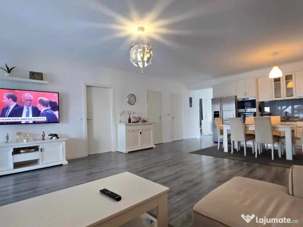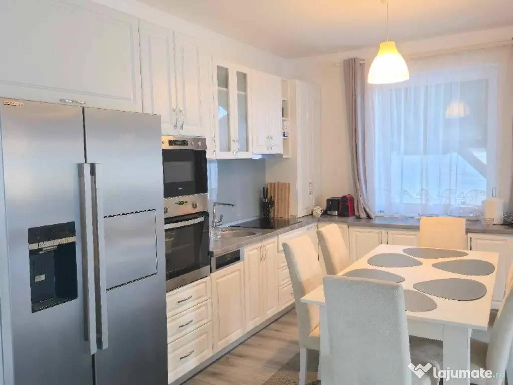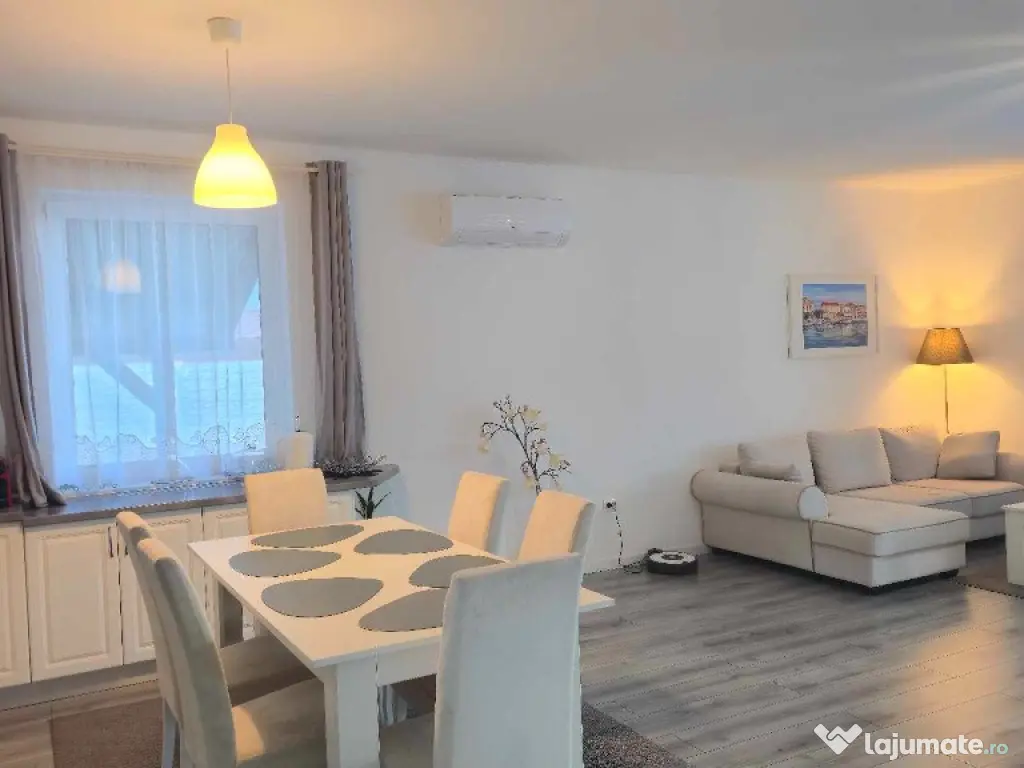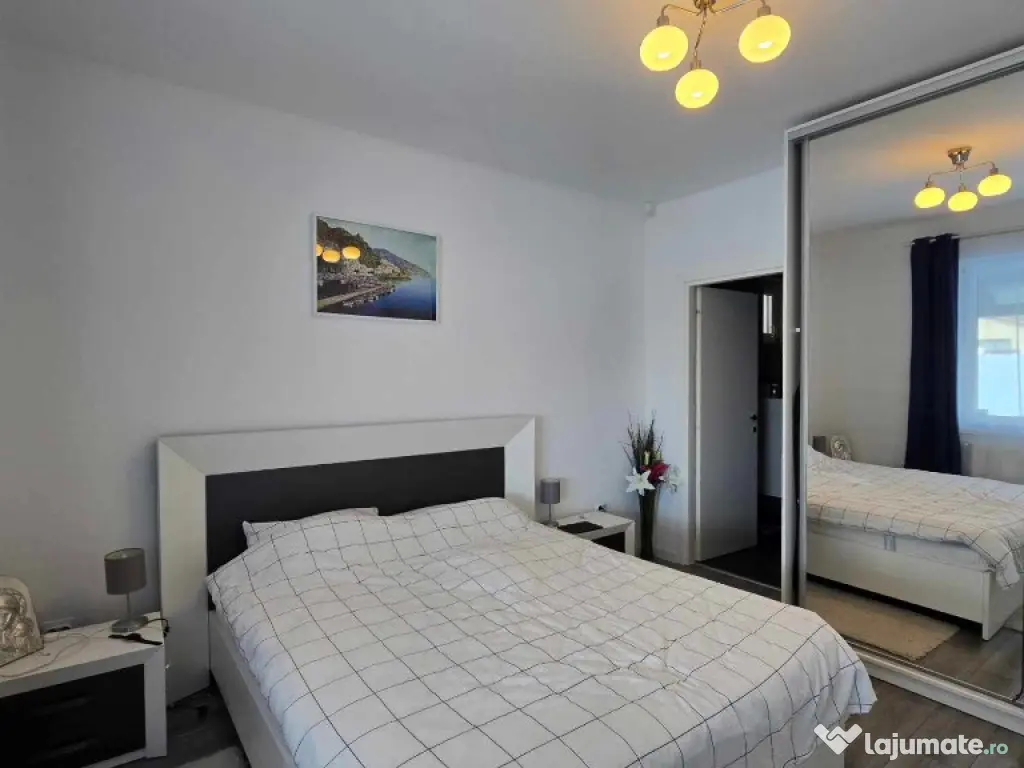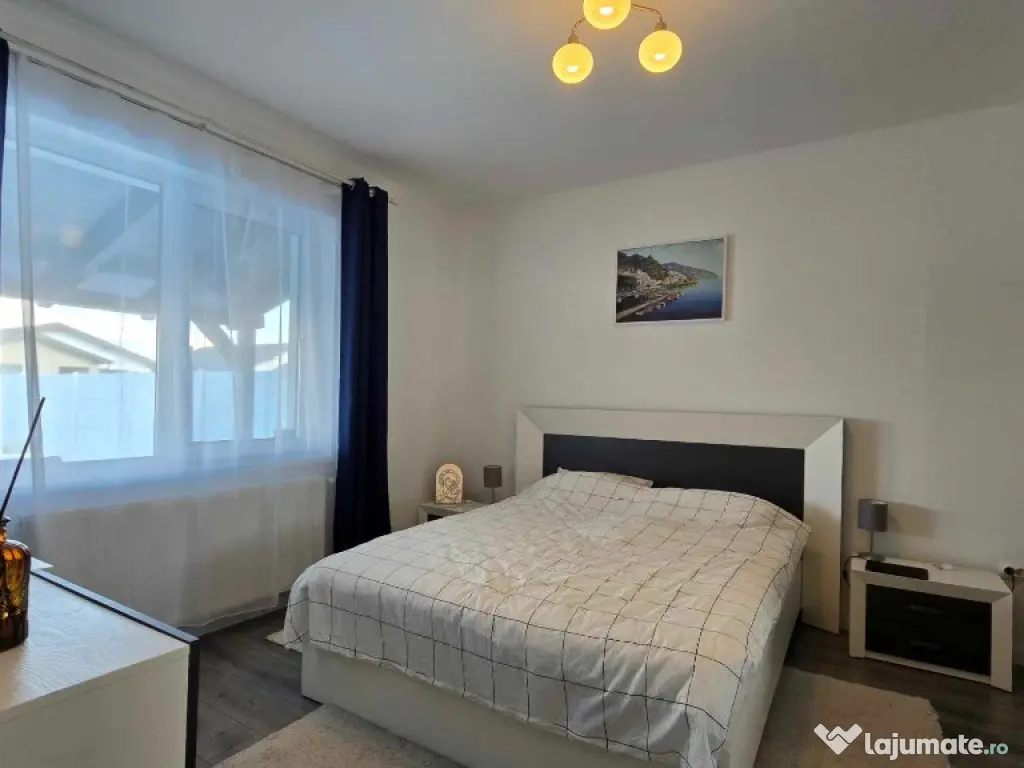 Cora Proiect Imobiliare va propune spre vanzare casa situata in Santandrei, in zona de intrare a localitatii, mai exact in spate la Mega Image, strada asfaltata , construita in regim parter, intrare auto- garaj si piscina incalzita. Disponibila la vanzare dar si schimb cu apartament nou, 3 camere, minim doua dormitoare, loc de parcare subteran sau exterior. Imobilul este finalizat in anul 2021, cu o amprenta bine definita asupra designului si dotarilor printr-o amenajare armonioasa, imaginile din fotografiile atasate fiind sugestive, toate acestea la un loc facand din aceasta casa un ambient primitor, imbietor. Suprafata terenului aferent acestui imobil este de 505 mp impreuna cu amprenta la sol, frontul stradal este generos, curte bine amenajata cu gazon, spatiu verde, plante ornamentale, sistem de irigatie, piscina 8×4 metri incalzita cu pompa de caldura, terasa de 30 mp in prelungirea casei, poarta automata cu intrare auto si garaj pentru minimum doua masini, anexa magazie. In suprafata construita de 130 mp si suprafata locuibila utila de 110 mp. Compusa din: hol de intrare, living cu loc de servit masa cu bucatarie in spatiu deschis, camara de alimente, 3 dormitoare, unul matromonial cu baie proprie, baie pe hol. Compartimentarea este foarte bine definita , doua dormitoare cu orientare stradala, adica vest, un dormitor matrimonial cu orientare rasarit, unul dintre dormitoare avand baie proprie cu intrare directa din dormitor, baie mare cu vana si fereastra, , iesire in terasa de 30 mp, acoperita cu loc de grill/profesional, loc de relaxare si luat masa.