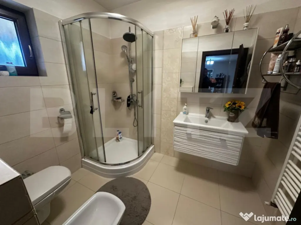 Blitz vă prezintă o proprietate deosebită, situată într-o zonă liniștită și apreciată intre Alba si Micesti, perfectă pentru o familie care își dorește spațiu, intimitate și calitate. Casa are o suprafață utilă de 164 mp și este amplasată pe un teren de 500 mp, cu front stradal generos de 22 ml. Compartimentarea este eficientă și luminoasă: – 3 dormitoare confortabile, dintre care două cu dressing propriu – living spațios, ideal pentru relaxare și socializare – bucătărie separată, practică și bine organizată – 2 băi moderne – cameră tehnică și spălător – balcon în formă de L, cu priveliște deschisă Zona exterioară este gândită pentru confort și relaxare, oferind o terasă acoperită cu zonă de grătar, spațiu liber în spatele casei și gazon cu sistem de aspersoare. Proprietatea dispune și de garaj generos de 40 mp. Construcția este realizată din cărămidă Porotherm de 30 cm, cu izolație exterioară de 10 cm, asigurând eficiență energetică ridicată. Casa este echipată cu geamuri termopan Salamander și uși interioare Porta Doors, recunoscute pentru calitate și durabilitate. Confortul termic este asigurat de încălzirea în pardoseală, completată de un șemineu care oferă o atmosferă caldă și primitoare. Imobilul beneficiază de toate utilitățile, hidrofor și este pregătit pentru mutare imediată. Preț: 310.000 € Cod ofertă / ID BLITZ: P165155 Id intern: P165155 Număr niveluri imobil: 1 Număr Băi: 2 Curent Apă Canalizare Gaz
