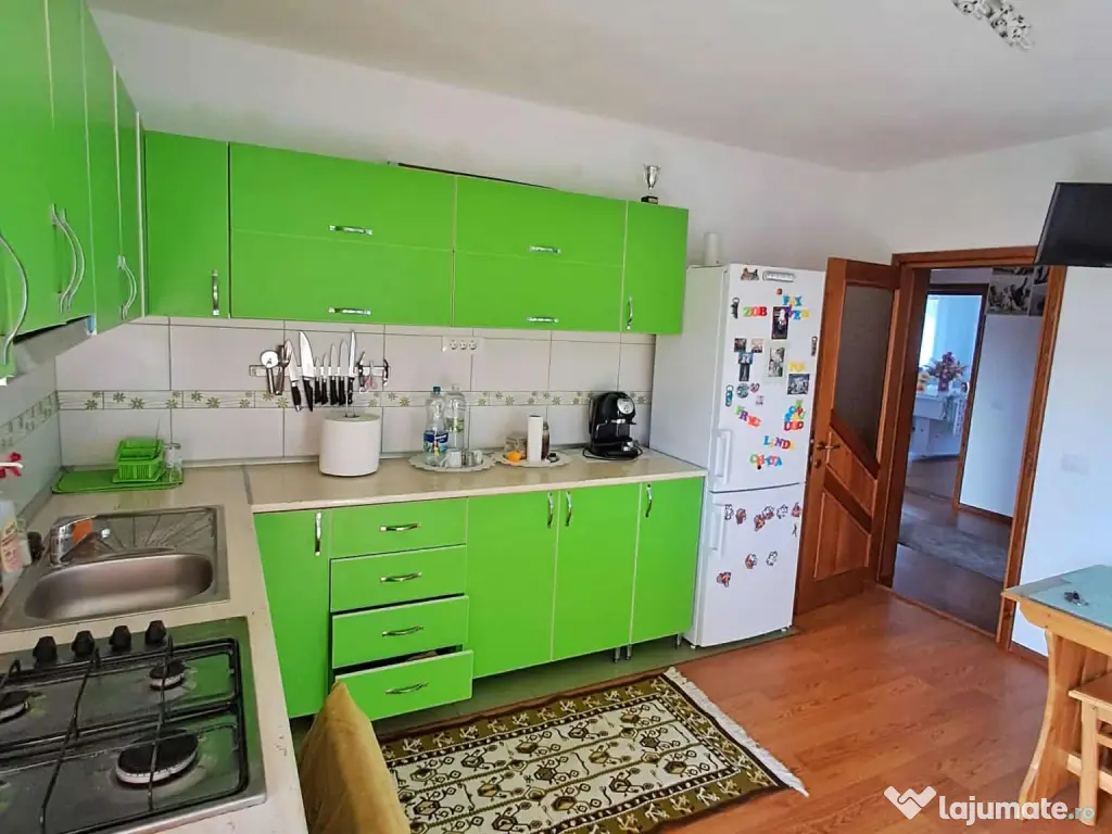 - Bucătărie mobilată și utilată, cu posibilitatea de a lua prânzul sau cina pe terasa din spate, ieșind pe a doua ușă a acesteia.
