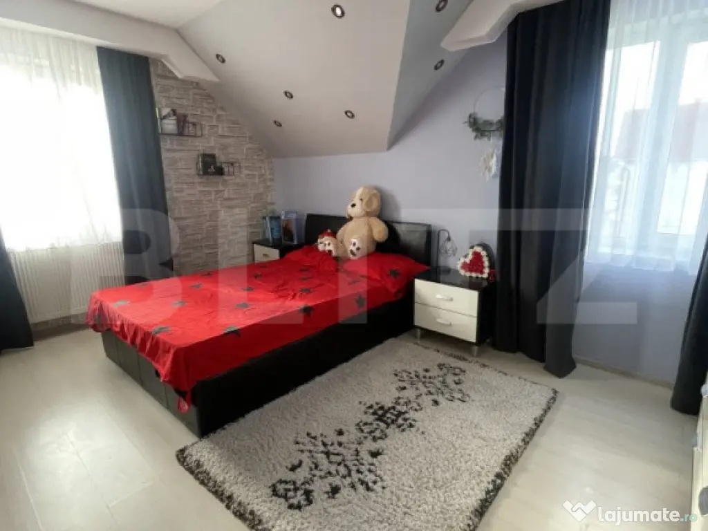 Blitz vă propune spre vanzare o casă, cu o suprafață de 260 mp, amplasată pe un teren generos de 1000 mp. Această locuință spațioasă oferă un stil de viață confortabil și funcțional pentru întreaga familie. Caracteristicile principale ale acestei case includ o suprafață generoasă, cu suficient spațiu pentru a vă bucura de toate activitățile preferate în confort și stil. La intrare, veți fi întâmpinați de un hol spațios, care vă va ghida către diferitele zone ale casei. Aici veți găsi un garaj generos, oferind protecție pentru vehiculele dvs. și spațiu suplimentar pentru depozitare. Bucătăria modernă este dotată cu facilități de ultimă generație, facilitând prepararea mesei pentru familia dvs. În plus, un living deschis și luminos este conectat la bucătărie, creând un spațiu ideal pentru socializare și relaxare. La etajul casei, veți descoperi 4 dormitoare spațioase, fiecare cu o atmosferă prietenoasă și confortabilă. Aceste dormitoare oferă spațiu suficient pentru odihnă și relaxare, iar un dressing spațios vă ajută să vă organizați garderoba în mod eficient. Băile moderne și funcționale adaugă un nivel suplimentar de comoditate la această proprietate. Această casă se află într-o zonă cu un mediu prietenos și o comunitate sigură. Pentru mai multe detalii contactati-ne cu incredere! Cod ofertă / ID BLITZ: P92928 Id intern: P92928 Număr niveluri imobil: 1 Număr Băi: 2 Nr. locuri parcare: 4