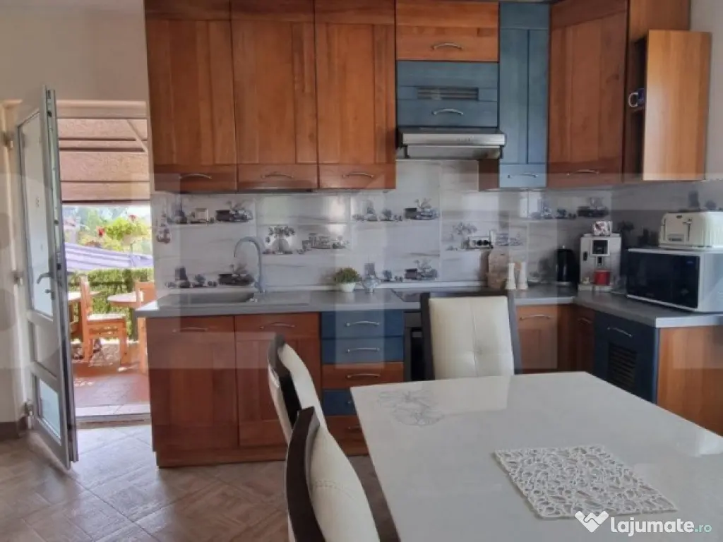 Blitz vă propune spre vanzare o casă, cu o suprafață de 260 mp, amplasată pe un teren generos de 1000 mp. Această locuință spațioasă oferă un stil de viață confortabil și funcțional pentru întreaga familie. Caracteristicile principale ale acestei case includ o suprafață generoasă, cu suficient spațiu pentru a vă bucura de toate activitățile preferate în confort și stil. La intrare, veți fi întâmpinați de un hol spațios, care vă va ghida către diferitele zone ale casei. Aici veți găsi un garaj generos, oferind protecție pentru vehiculele dvs. și spațiu suplimentar pentru depozitare. Bucătăria modernă este dotată cu facilități de ultimă generație, facilitând prepararea mesei pentru familia dvs. În plus, un living deschis și luminos este conectat la bucătărie, creând un spațiu ideal pentru socializare și relaxare.
