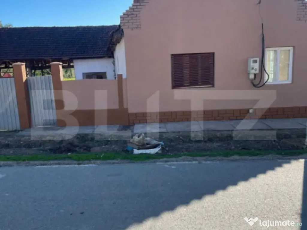 Blitz va prezinta o casă bătrânească (cu fațada și interioare recent renovate) - grădină de vânzare în localitatea Cladova, com Bethausen, situată pe strada principală. - Suprafața totală a terenului este de 3034 mp, - casa are o suprafața utila de 276 mp, formată din 2 corpuri separate - unul din cărămidă, - care cuprinde un hol de acces - 1 cameră, bucătărie și baie- iar celălalt corp este din vaiuga și cuprinde un hol de acces, - 3 camere, cămară și acces în pod. Casa are front stradal larg cu 2 cai de acces de la strada principală; - este racordată la rețeaua de apă, canalizare și curent, încălzirea este asigurată prin teracote. Mai dispune de anexe, grajduri, șură de fân, bucătărie de vară, cu suprafațe totale de 207 mp. Casa se poate vinde împreună cu terenuri agricole cu suprafața totală de 6 ha, preț 4000€/ha. Cod ofertă / ID BLITZ: P169350 Id intern: P169350 Număr Băi: 1 Curent Apă Canalizare