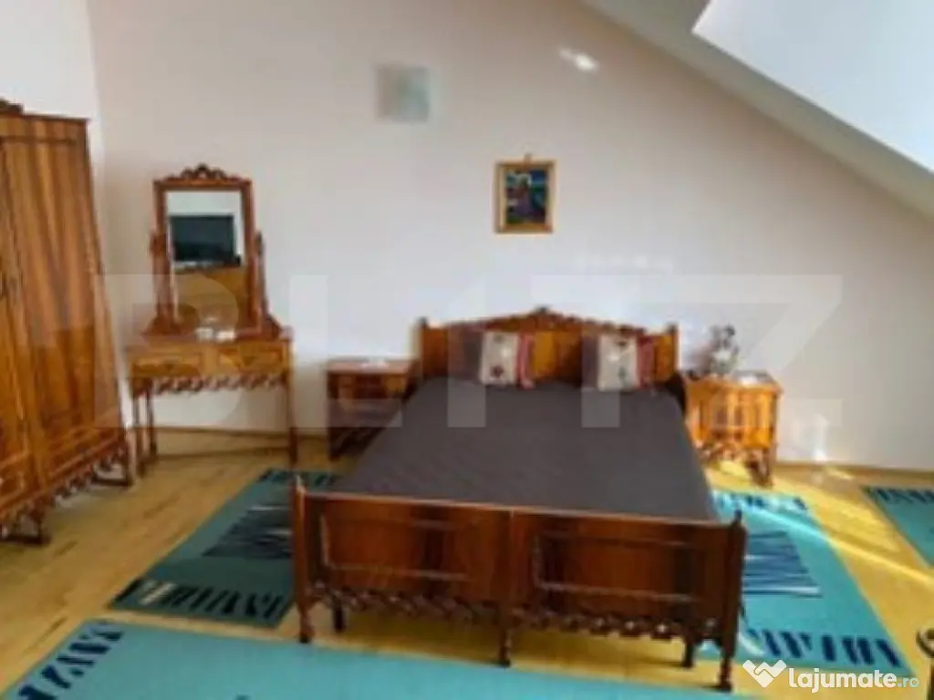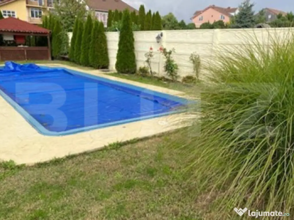 Blitz va ofera spre vanzare o casa in Paulesti, 400 mp. Imobilul este compus din S+P+I+M, cu o suprafață construită de 400 mp, amprenta la sol de 238mp. Terenul aferent este în suprafață de 1.445 mp. An constructie : 2000 DESCRIERE: Structura imobilului este împărțită astfel: - Demisolul cuprinde: sală de sport complet dotată, sală pentru centrală și spălătorie, cămară rece pentru alimente. - Parterul cuprinde: 2 camere, 1 baie, 1 living, 1 bucătărie, 1 cămară alimente. Parterul are acces direct pe terasa din spatele casei, precum și access direct în demisol. - Etaj: 2 camere, 1 baie, ieșire pe terasa din față a casei. - Etaj intermediar: 1 dormitor, 1 balcon interior aferent livingului. Etajul intermediar are acces la un balcon exterior. - Mansarda: 2 camere, 1 baie, ieșire pe un balcon exterior. - Pod: spații amenajate de depozitare. Anexele imobilului se compun din: - 3 garaje – în suprafață totală de aprox 40 mp. - 1 anexă – cameră auxiliară cu duș și saună în suprafață de aprox 32 mp. - 1 anexă – magazie tehnică pentru scule și unelte, în suprafață de 20 mp. - Foișor exterior acoperit, pentru luat masa afară. - Cuptor + grătar exterior. - Piscină exterioară cu dimensiuni 11m x 4m, cu capacitate de aprox 65 mc apă cu sistem integrat de filtrare a apei. Dotări suplimentare: - Sistem subteran de irigare a spațiilor verzi. - Teren aferent în suprafața totală de 1445mp, complet împrejmuit cu garduri și mulți copaci. - Poartă de acces cu acționare electrică prin radiofrecvență. - Sistem de supraveghere video (zi+noapte) cu 3 camere exterioare. - Sistem de alarmă pentru efracție. - Sistem de încălzire cu calorifere, centrală pe gaz tip Termomax 65 kw. - Instalație solară de încălzire a apei. - Panouri fotovoltaice. Vila se vinde complet mobilată și utilată. Cod ofertă / ID BLITZ: P147729 Id intern: P147729 Număr niveluri imobil: 2 Număr Băi: 3 Curent Apă Canalizare Gaz Sistem irigaţie