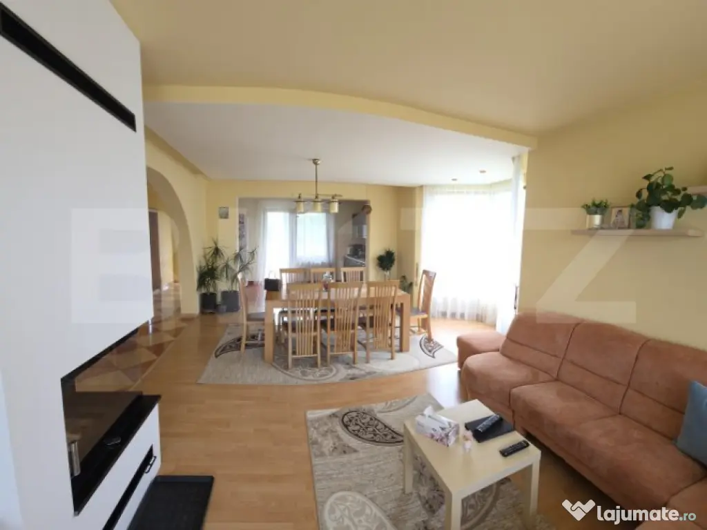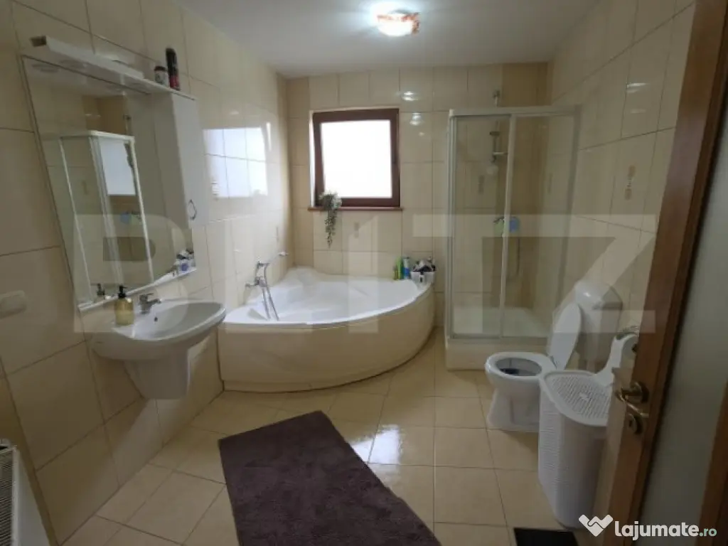 Blitz va prezinta ceastă proprietate, care este o oportunitate excelentă pentru cei care doresc confort, spațiu și un cadru natural bine amenajat. Cu o suprafață utilă de 340 mp și o curte generoasă de 2200 mp, locuința îmbină perfect eleganța modernă cu farmecul unui mediu verde și bine întreținut. O locuință de vis – Spații luminoase și bine compartimentate: Parter: Living generos open space cu bucătărie modernă, ideal pentru momente de socializare. Două dormitoare confortabile și o baie spatioasa. Etaj: Trei dormitoare spațioase, o baie rspatioasa și un living mare cu acces pe balcon din hol și living, oferind o priveliște spectaculoasă asupra curții. Subsol: O zonă practică cu baie, cămară, bucătărie, camera centralei și garaj. Curtea – un adevărat colț de natură: Amenajată cu viță de vie, căpșuni, pomi fructiferi și un solar pentru pasionații de grădinărit. Sistem de irigare din fântână proprie, asigurând întreținerea eficientă a gazonului si intreaga gradina! Grădină frumos decorată în fața casei, cu flori, tuia și gazon, oferind un ambient relaxant. Spațiu și funcționalitate: Terasă acoperită pentru momente de relaxare. Spații de depozitare, lemnărie și două garaje suplimentare. Curtea amenajată oferă un aspect plăcut și organizat, ideal pentru orice familie. Aceasta este o locuință perfectă pentru cei care doresc liniște, spațiu generos și o legătură directă cu natura, beneficiind totodată de facilități moderne și bine gândite. Cod ofertă / ID BLITZ: P145053 Id intern: P145053 Număr niveluri imobil: 1 Număr Băi: 3 Curent Apă Canalizare Gaz