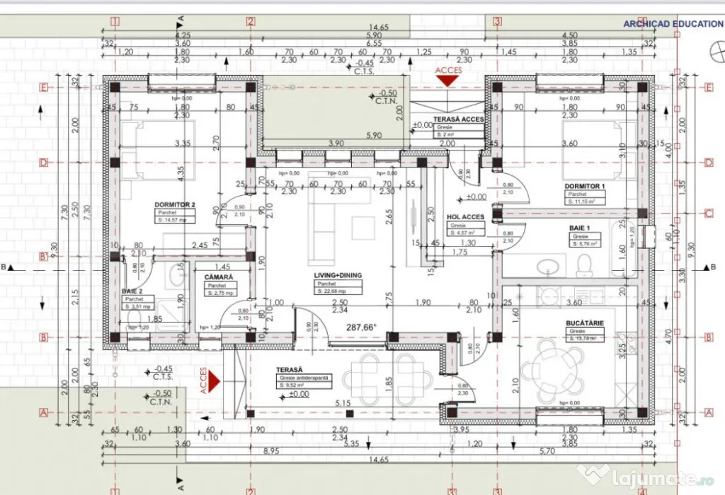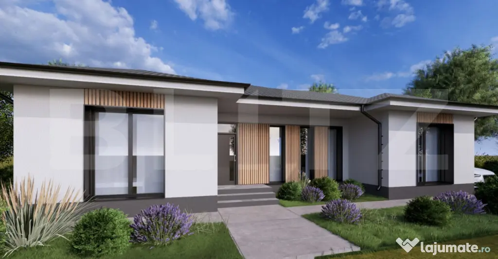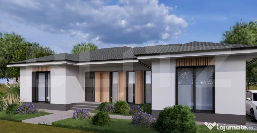 Blitz vă propune o locuință recent construită, pe un teren de 300 mp, cu suprafața construită de 118 mp și 80 mp utili + terasă. Ideală pentru cei care caută o casă gata de mutare, cu termen de finalizare rapid: iulie–august. Compartimentare funcțională: – 2 dormitoare luminoase – 2 băi moderne – living spațios – bucătărie separată – cameră tehnică Casa combină confortul cu utilitatea, având o terasă plăcută și spațiu optim pentru relaxare. Este construită cu materiale de calitate și predată la cheie. Preț: 179.000 € Cod ofertă / ID BLITZ: P165156 Id intern: P165156 Număr Băi: 2 Curent Apă Canalizare Gaz