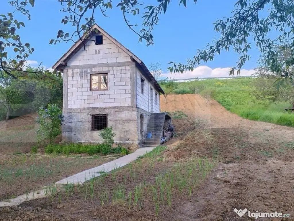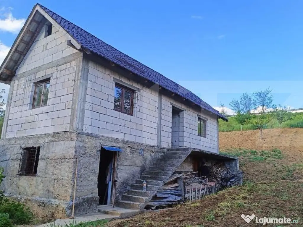 Blitz va propune spre vanzare casa situata in Aghires cu o suprafata totala de 60mp, suprafata utila 49mp, teren 1600mp.Casa este compusa la parter din living cu bacatrie si baie , la etaj 2 camere si o baie.Etajul este finisat , zona cu priveliste panoramica .Merita vazuta !