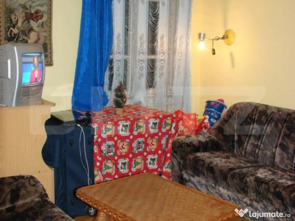Blitz va propune să achizitinati o casă modestă în Vatra Dornei Descoperiți o locuință modestă și primitoare în pitorescul Vatra Dornei, ideală pentru cei care caută un cămin confortabil și accesibil. Caracteristici ale Proprietății: - Suprafață Totală: 76 mp - Compartimentare: Două dormitoare practice, o bucătărie funcțională, baie și hol. - Spațiu Adițional: Cameră separată de 20 mp, dotată cu baie proprie și cabină de duș, încălzită cu un boiler instant, oferind intimitate și confort. - Anexe: Cămară exterioară și spațiu pentru depozitarea lemnelor. - Pod: Posibilitate de mansardare, pentru extinderea spațiului locuibil. - Încălzire: Sistem de încălzire prin sobă cu lemne și gaz, asigurând un mediu cald și confortabil. - Utilități: Racordare la apă comunală. - Acoperiș: Acoperiș din azbest. - Ferestre: Mix de geamuri din lemn și termopan. - Finisaje: Gresie, podele și faianță. Informații Suplimentare IMPORTANT: În curte, deasupra anexei, se află o încăpere locuită de o doamnă de 32 de ani, care deține drept de proprietate doar asupra acelei camere. Prezența acesteia nu deranjează în niciun fel viitorii proprietari ai casei. Această casă reprezintă o oportunitate excelentă pentru cei ce doresc să-și pună amprenta personală într-o locuință modestă și practică, într-o zonă liniștită și plină de frumusețe naturală. Cod ofertă / ID BLITZ: P143595 Id intern: P143595 Număr Băi: 2 Curent Apă Canalizare Gaz