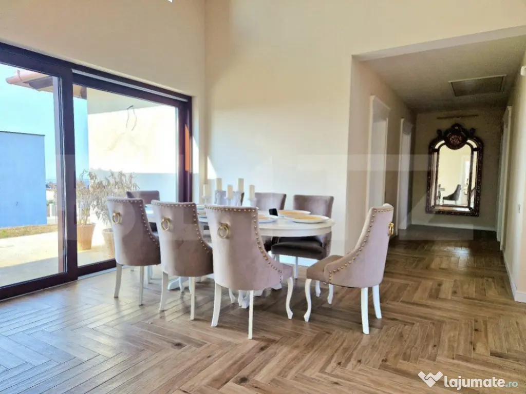 Blitz oferă spre vânzare o casă superbă, pe un singur nivel, ideală pentru o familie care își dorește confort, intimitate și o locație deosebită. Proprietatea este situată într-o zonă liniștită și beneficiază de o panoramă spectaculoasă, perfectă pentru momente de relaxare. Detalii proprietate: Suprafață construită: compartimentare inteligentă pe plan parter, asigurând confort și funcționalitate. Camere: 4 camere spațioase: 2 dormitoare pentru copii 1 dormitor matrimonial cu dressing generos și baie proprie 1 living luminos, cu acces către zona de luat masa Băi: 2 băi complet echipate. Bucătărie: bucătărie separată, ideală pentru pasionații de gătit. Alte facilități: spălătorie și cameră tehnică, pentru organizare optimă. Teren și locație: Teren generos: suprafață totală de 1000 mp, ideal pentru grădină, loc de joacă sau alte activități recreative. Zonă: locuința este poziționată într-o zonă liniștită, departe de agitația urbană, oferind intimitate și un mediu prietenos pentru familie. Avantaje cheie: Design modern. Locație ideală, cu priveliști de vis. Perfectă pentru familii, datorită compartimentării și terenului generos. Această casă îți oferă tot ce ai nevoie pentru a te bucura de confort și calitate, într-un cadru deosebit. Contactează-ne acum pentru mai multe informații sau pentru a programa o vizionare! Cod ofertă / ID BLITZ: P140301 Id intern: P140301 Număr Băi: 2 Nr. locuri parcare: 3 Curent Apă Climă