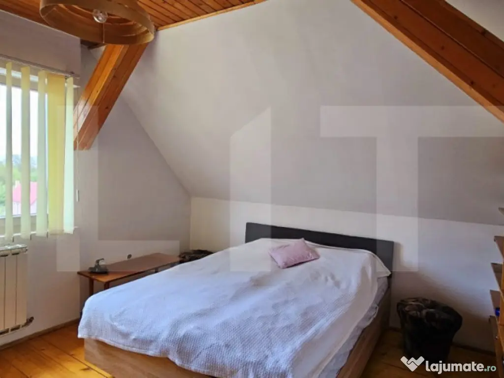 Blitz va propune spre vânzare o proprietate versatilă, perfectă atât pentru o familie numeroasă, cât și pentru diverse activități comerciale. Caracteristici generale: Suprafață utilă: 300 mp Structură: Parter + Etaj + Mansardă An construcție: 1995 Construcție solidă din cărămidă Teren: 302 mp, frumos amenajat, cu posibilitate de extindere cu încă aproximativ 200 mp Compartimentare: Fiecare nivel dispune de 2 camere, 1 bucătărie, 1 baie și camara (mansarda nu are bucătărie) Livingurile se pot compartimenta cu ușurință pentru a obține camere suplimentare – ideal pentru amenajarea unei pensiuni Dotări și finisaje: Încălzire centralizată cu gaz și cazan pe lemne Ferestre din lemn stratificat de calitate superioară (Fenestela) Acoperiș recent verificat și recondiționat Gard nou din lemn de brad Se vinde complet mobilată sau nemobilată, în funcție de preferințele cumpărătorului Această proprietate reprezintă o oportunitate excelentă de investiție datorită versatilității sale, aproape de spitalul judetean. Pentru detalii suplimentare sau vizionări, vă stau la dispoziție. Cod ofertă / ID BLITZ: P144643 Id intern: P144643 Număr niveluri imobil: 2 Număr Băi: 3 Curent Apă Canalizare Gaz