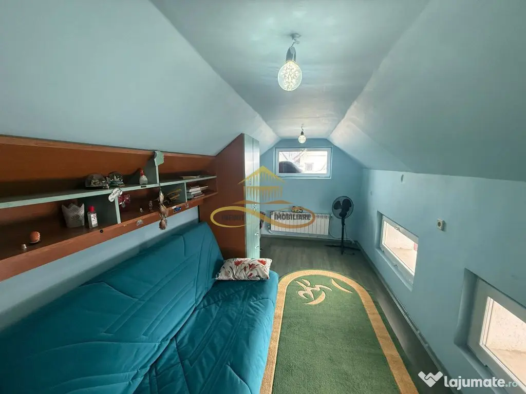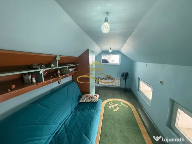 - La etajul 1 se află 3 dormitoare , unul fiind mansardat și o baie cu cabină de duș și geam mare din termopan.