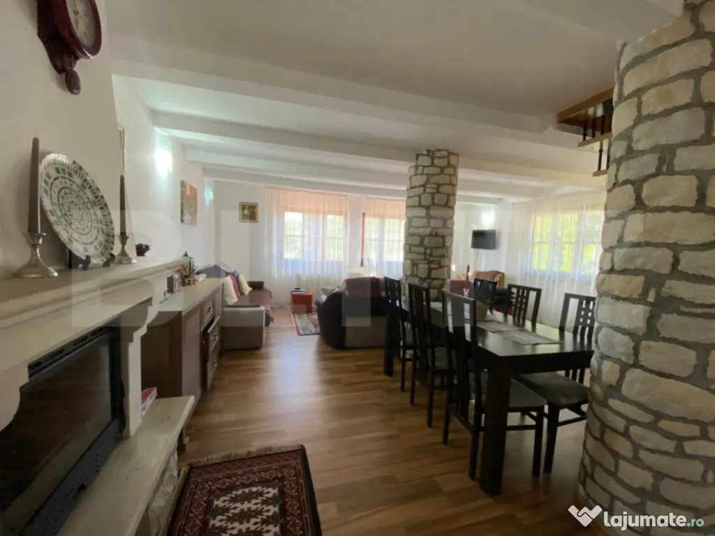 Dacă visezi la o locuință aproape de oraș, dar departe de agitație, această casă din satul Mera, situată pe drumul spre Zalău, poate fi exact ce cauți. Cu o suprafață utilă de 180 mp și un teren generos de 1.366 mp, casa este ideală pentru o familie care își dorește confort și un stil de viață echilibrat, aproape de natură. Utilități și facilități: apă curentă, electricitate, internet, centrală pe lemne și cișmea în curte. Proprietatea este complet împrejmuită și dispune de fosă septică, urmând ca în zonă să fie introduse gazul și canalizarea în viitorul apropiat. Compartimentare practică și bine gândită: Parter: bucătărie cu living, baie, dressing, cămară și cameră tehnică. Etaj: living, bucătărie separată și baie. Mansardă: 3 dormitoare, baie de serviciu și balcon cu vedere spre curte. Curtea este împărțită în trei zone distincte: -zonă de relaxare cu terasă, -grădină de legume pentru cei pasionați de agricultură, -o livadă cu pomi fructiferi, tufe de zmeură și mure. În plus, există o anexă ca și spațiu de depozitare pentru unelte de grădinărit și diverse. Bonus: posibilitatea montarii de panouri solare si a unei pompe de caldura. Zona este foarte liniștită, ideală pentru cei care caută pace, aer curat și legătura cu natura, fără să renunțe la accesul rapid către Cluj. Cod ofertă / ID BLITZ: P144934 Id intern: P144934 Număr niveluri imobil: 1 Număr Băi: 3 Curent Apă