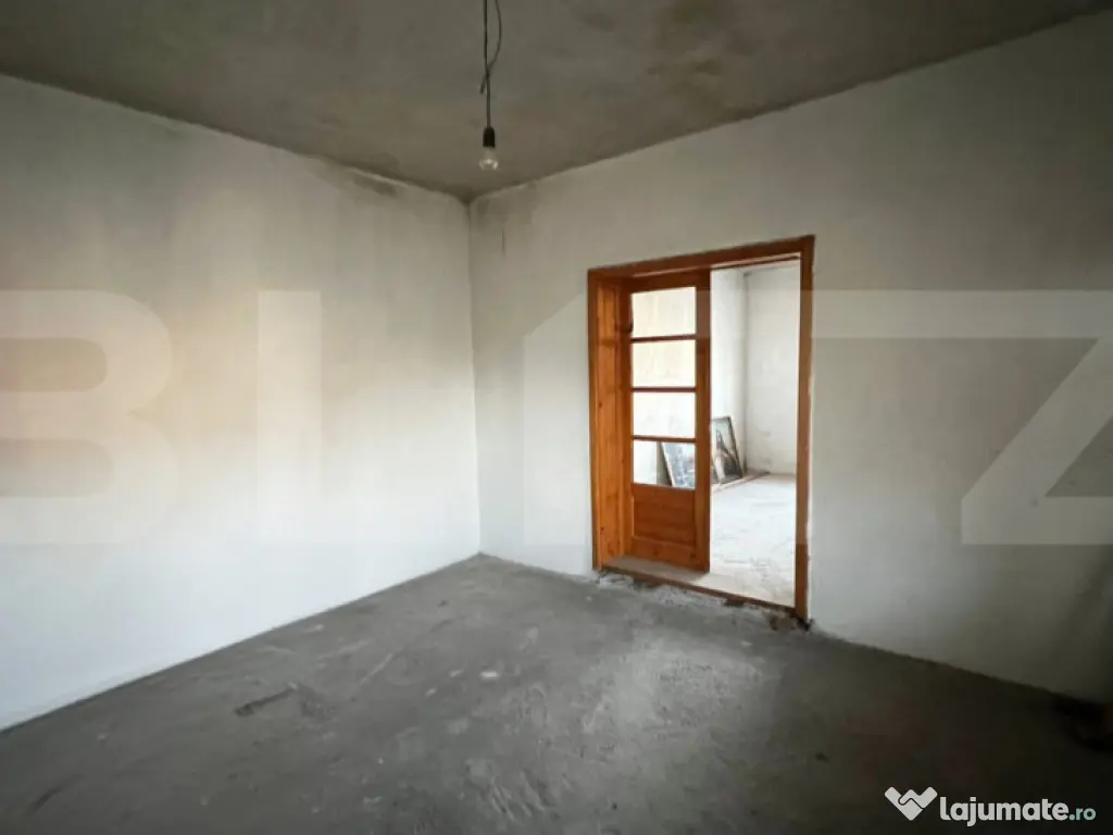 BLITZ vă propune spre vânzare o proprietate situată în Blaj, amplasată pe un teren generos de 1950 mp, ideal pentru locuit, investiție sau amenajarea unei gospodării spațioase. Locuința are aproximativ 110 mp suprafață utilă și este semidecomandată, fiind compartimentată astfel: 5 camere, bucătărie, cămară și beci. Pe proprietate se regăsesc și anexe gospodărești, care nu sunt incluse în suprafața utilă a casei. Casa dispune de ziduri solide, fără igrasie, însă necesită renovare, oferind viitorului proprietar posibilitatea de a o amenaja după propriul gust. Terenul include și o mică livadă în grădină, fiind potrivit pentru cei care își doresc spațiu verde, grădină sau zonă de relaxare. Utilități: curent electric apă gaz racordate celelalte utilități se află în fața proprietății Proprietatea reprezintă o oportunitate bună atât pentru locuință, cât și pentru investiție, datorită terenului mare și poziționării într-o zonă liniștită. Pentru mai multe informații sau programarea unei vizionări, nu ezitați să ne contactați. Cod ofertă / ID BLITZ: P166040 Id intern: P166040 Număr niveluri imobil: 1 Număr Băi: 1 Curent Apă Gaz