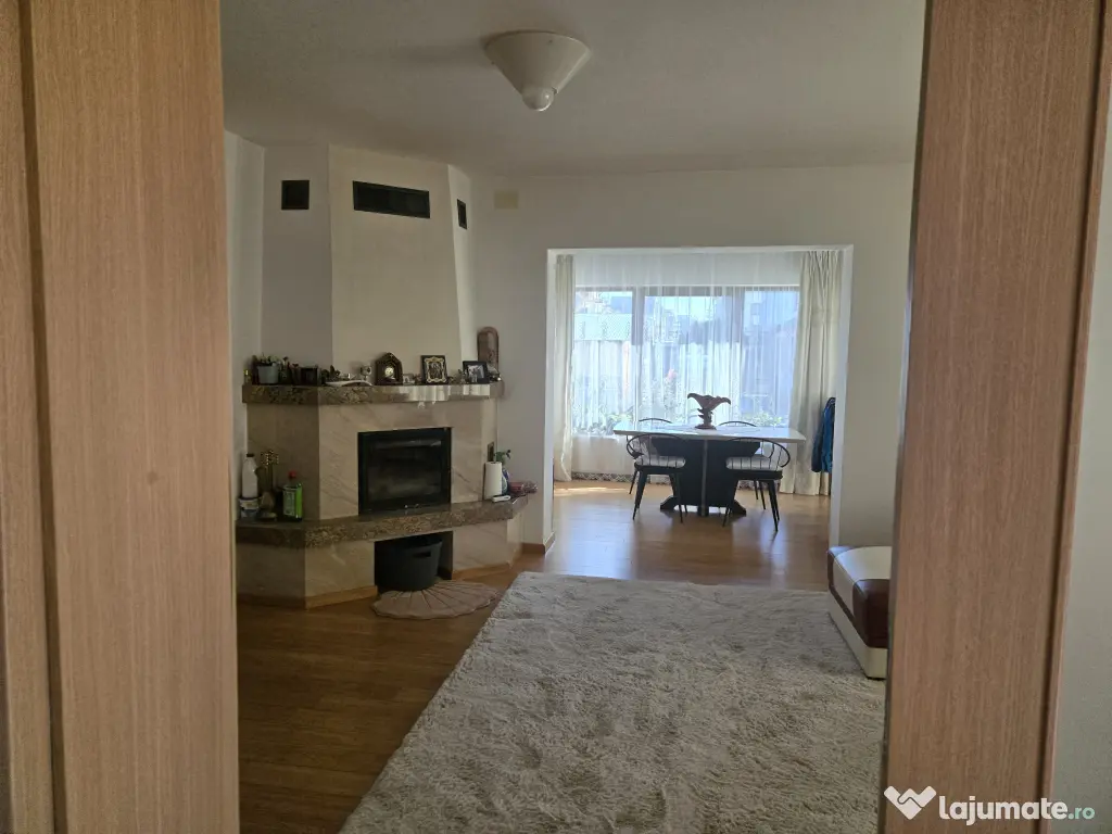 Casa de vanzare in cartierul Tractorul.Suprafata construita 270 m,teren 720 m dispusa pe demisol parter si etaj.2 garaje inchise,porti automatizate.Partial mobilata.Semineu pe lemn in living.Centrala pe gaz.Constructie caramida,acoperos tigla.