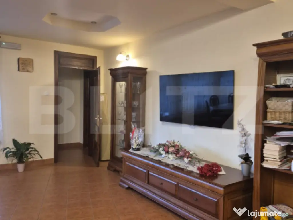 Casă spațioasă de locuit sau pensiune – Corunca, Zonă de Vis, 3200 mp teren Vă prezentăm spre vânzare o proprietate impresionantă situată în Corunca, într-o zonă liniștită și ideală pentru familii sau investiții turistice. Accesul se face ușor, pe stradă asfaltată, la doar 300 m de E60, ceea ce oferă vizibilitate și acces rapid către Târgu Mureș, Sovata, Praid sau zona medicală. Cu o suprafață desfășurată de 610 m², plus un pod locuibil de 75 m², imobilul se remarcă prin spații generoase, compartimentare versatilă și dotări complete. Regimul de înălțime D+P+E+M permite utilizarea atât ca locuință multifamilială, cât și ca pensiune, centru de recuperare, afterschool sau sediu de firmă cu locuire. Terenul spectaculos de 3200 m² include o livadă de pomi fructiferi, spații verzi ample și zone dedicate relaxării. Dotări generale Centrale termice pe gaz și lemn Panouri solare Anexe pe structură de lemn Copertină pentru mașini Terasă generoasă + ciubăr Multiple spații de depozitare Camere cu baie proprie (ideal pentru pensiune) --- Compartimentare detaliată Parter Living generos 50 mp Bucătărie separată 2 dormitoare cu baie proprie Birou + cameră hobby / birou secundar Toaletă serviciu Spălătorie Terasă mare cu 2 toalete exterioare Ciubăr Cameră tehnică Etaj Living de 50 mp Bucătărie complet funcțională 3 dormitoare, fiecare cu baie proprie Un dormitor suplimentar O baie de serviciu 3 terase cu priveliști deschise-- Mansardă 3 camere 1 baie cu duș Spațiu ideal pentru oaspeți, adolescenți sau zonă de recreere. --- Subsol (Demisol) Garaj dublu Cameră tehnică (centrală) 1 dormitor cu baie și dressing Cămara Multiple spații de depozitare --- Teren și exterior Suprafață teren: 3200 mp Livadă matură de pomi fructiferi Spații largi pentru joacă, relaxare sau amenajări ulterioare Anexe utile pentru depozitare sau activități recreative --- O proprietate versatilă, perfectă pentru familie sau investiție Cu camere multiple, băi proprii, spații comune generoase și o structură concepută pentru confort pe termen lung, această casă din Corunca este ideală pentru: pensiune sau agropensiune, locuință multifamilială, business + locuire, centru de recuperare / wellness, familie numeroasă care își dorește spațiu, liniște și natură. Un imobil complet, amplasat într-o zonă deosebită, care oferă atât confort cât și oportunitate de dezvoltare. Cod ofertă / ID BLITZ: P159838 Id intern: P159838 Număr niveluri imobil: 1 Număr Băi: 7 Nr. locuri parcare: 5-10 Curent Apă Canalizare Gaz Climă