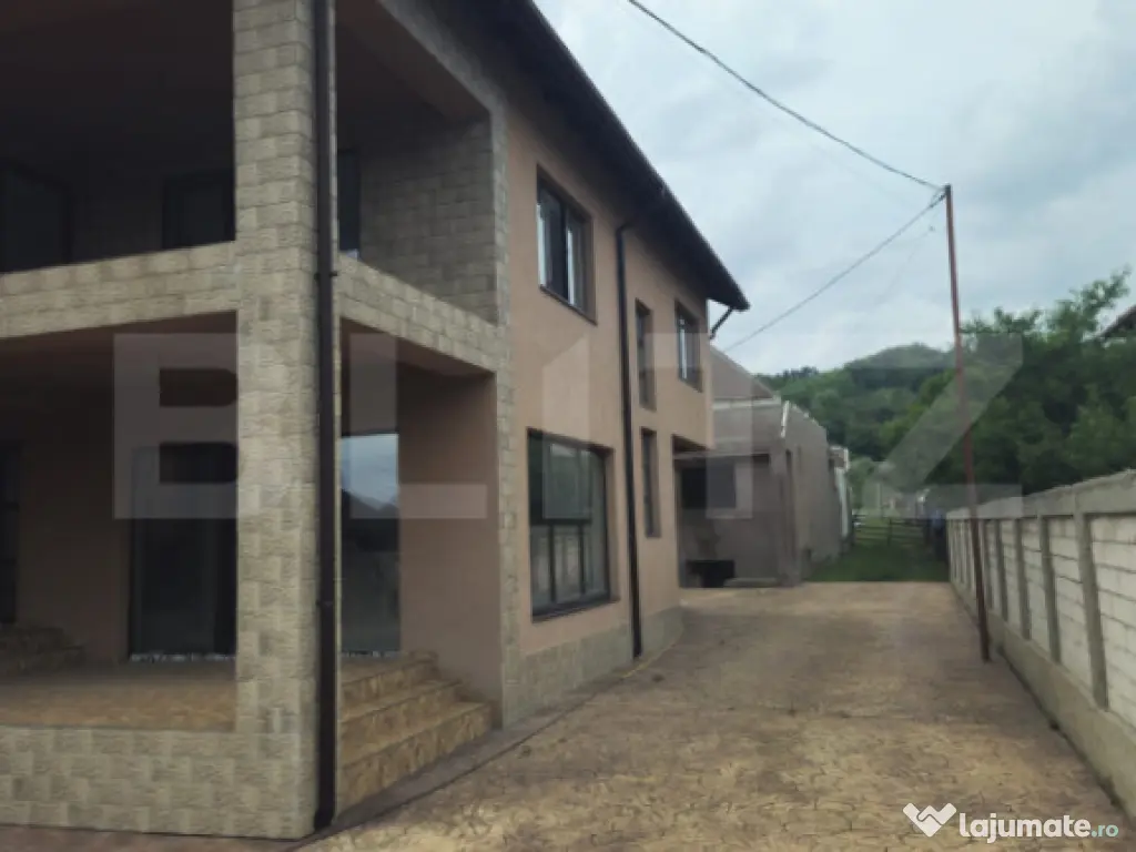 Blitz Târgoviște vă propune spre achiziție o proprietate nouă situată în Gemenea Brătulești, județul Dâmbovița, o zonă cu peisaj montan de poveste, recunoscută pentru liniște, aer curat și natură autentică. Localitatea oferă acces facil către puncte turistice din zona de nord a județului, fiind totodată ideală pentru o locuință permanentă sau de vacanță. Descrierea proprietății: - Construcție începută în 2020, finalizată în proporție de peste 80%; - Casa este pregătită pentru personalizare: trebuie montată pardoseala, utilate băile (gresie și faianță montate), vopsiți pereții; - Camere luminoase, cu ferestre mari din PVC de calitate superioară; - Încălzire în pardoseală, centrală pe lemne și peleți funcțională; - Gazul urmează să fie tras, contractul fiind deja semnat; - Racordată la apă, curent, canalizare, izolată termic interior și exterior; - Curtea este amenajată cu beton amprentat, rigole pentru apă pluvială, gard din BCA; - În fața casei – foișor din lemn, în spate – garaj cu uși automate; - Livadă proprie în spatele terenului, iar proprietatea are deschidere și la un drum asfaltat – cu posibilitatea de construire a unei a doua case (întreg terenul este intravilan). Această casă este o oportunitate excelentă pentru cei care caută o proprietate într-o zonă verde, de munte, cu toate facilitățile moderne deja pregătite. Finalizarea lucrărilor rămase permite personalizarea după propriile gusturi. Perfectă pentru familie, relaxare sau investiție! Cod ofertă / ID BLITZ: P149959 Id intern: P149959 Număr niveluri imobil: 1 Număr Băi: 2 Curent Apă Canalizare