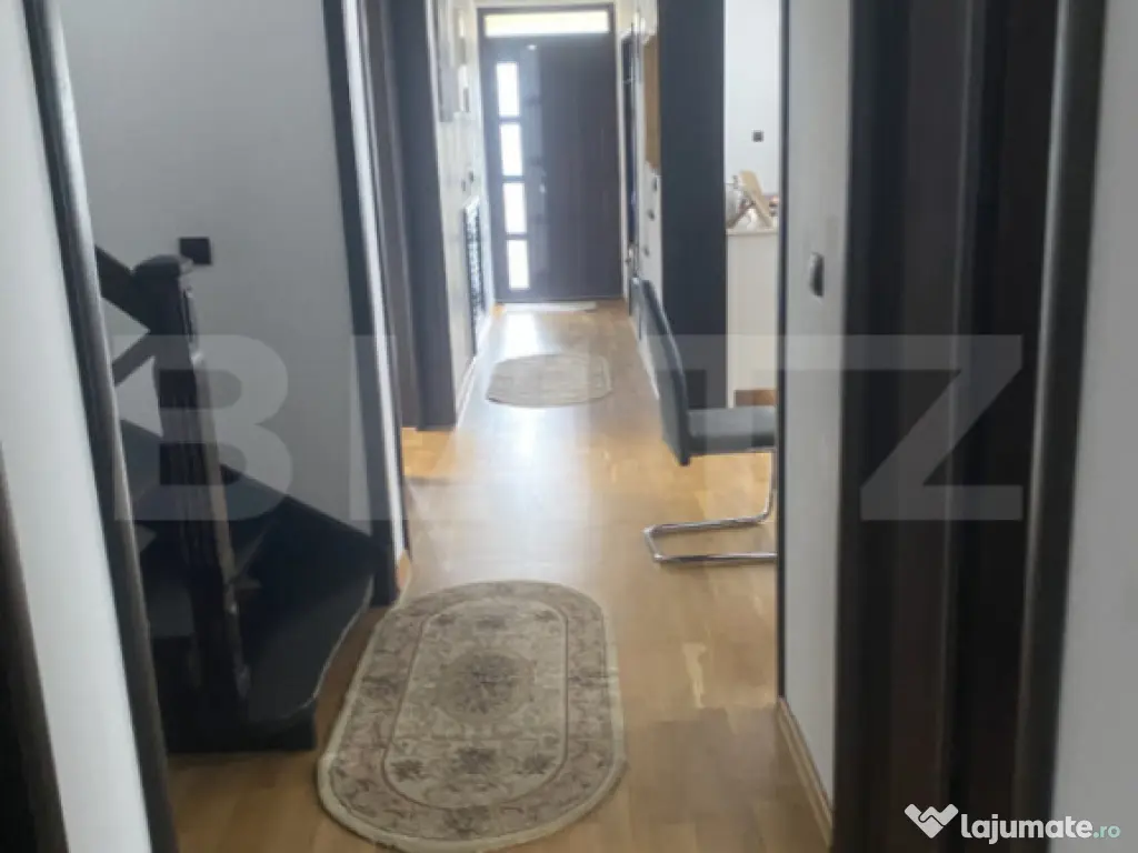 Blitz va propune o oportunitate unică de achiziție! Această proprietate se întinde pe un teren de 714 mp, incluzând 174 mp de teren pășunat și 300 mp de spațiu util, ideal pentru familii sau pentru cei care își doresc un cămin confortabil, înconjurat de natură. Detalii despre imobil: - Structură: Construcția este realizată din BCA și este izolată exterior pentru un confort termic optim. - Sisteme de apă: Proprietatea beneficiază de apă de la rețeaua orașului, dar și de o fântână proprie, oferind astfel flexibilitate și independență. - Încălzire: Sistemul de încălzire este performant, având o centrală pe lemne Arca Aspiri, un boiler electric pentru apă caldă și o centrală pe gaz Ariston, astfel încât să aveți mereu confortul dorit. Încălzirea este asigurată prin pardoseală, în combinație cu caloriferele. - canalizare - racordare la canalizarea orașului Compartimentare: - Parter: La parter veți găsi o bucătărie spațioasă, un dormitor, o baie modernă, o sufragerie primitoare și un hol. De asemenea, în exterior, există o cămară și o magazie, iar o baie cu saună este în construcție, oferind un plus de confort. - Etaj: La etaj, vă așteaptă o terasă cu o priveliște superbă asupra pădurii, care devine locul ideal pentru relaxare. Terasa include o magazie ce poate fi transformată cu ușurință în baie, având hornul aproape. De asemenea, etajul cuprinde un hol, o baie și patru dormitoare. Trei dintre dormitoare au acces la balcoane (unul fiind propriu, iar două comune), iar unul dintre dormitoare beneficiază de baie proprie. Această proprietate este perfectă pentru cei care caută un cămin liniștit, dar și pentru investitori care doresc să dezvolte un proiect turistic datorită amplasamentului său favorabil. Nu ratați ocazia de a viziona această proprietate! Contactați-ne pentru mai multe informații și pentru a programa o vizionare. Cod ofertă / ID BLITZ: P149055 Id intern: P149055 Număr niveluri imobil: 1 Număr Băi: 4 Curent Apă Canalizare Gaz