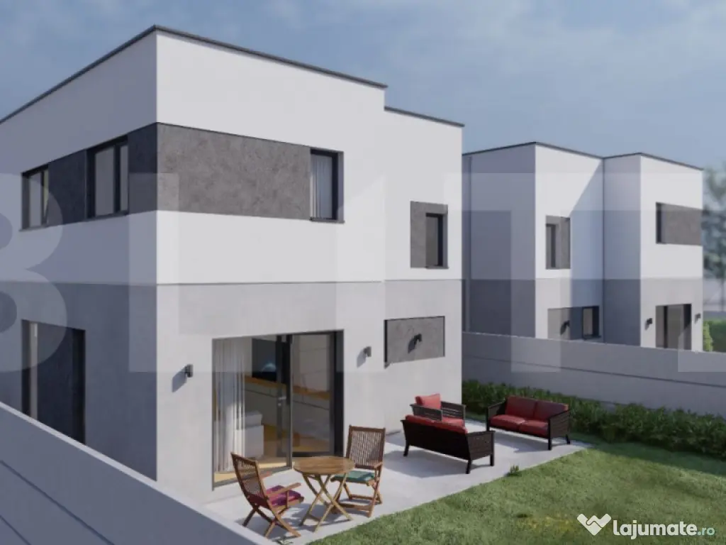 BLITZ oferă spre vânzare casă individuală modernă, situată la intrarea dinspre Timișoara în localitatea Săcălaz, în apropierea cartierului Primăverii. Imobilul are un regim de înălțime P+E, cu o suprafață construită de 140 mp, fiind amplasat pe un teren de 285 mp/casă. ???? Suprafață utilă: 100 mp ???? Terasă: 22 mp Compartimentare: Parter: Hol de acces Living & Dining Bucătărie Baie Cameră tehnică Etaj: 3 dormitoare Baie Preț casă complet finisată: 180.000 € TVA INCLUS Specificații tehnice și finisaje: Zidărie din cărămidă portantă Porotherm Cemacon Izolație exterioară cu polistiren EPS 80 – 15 cm Încălzire în pardoseală Centrală termică pe gaz Tâmplărie PVC Salamander, geam tripan Acoperiș tip terasă cu membrană PVC și strat de pietriș Buget generos pentru finisaje: Obiecte sanitare baie: 10.000 lei Gresie: 150 lei/mp Faianță: 150 lei/mp Parchet: 150 lei/mp Utilități trase: apă, canalizare, gaz, curent electric Include: Zidărie din cărămidă portantă Porotherm Cemacon Tâmplărie PVC Salamander, tripan Utilități în fața parcelei Se acceptă achiziția prin credit bancar. Cod ofertă / ID BLITZ: P146292 Id intern: P146292 Număr niveluri imobil: 1 Număr Băi: 2 Nr. locuri parcare: 2 Curent Apă Canalizare Gaz Climă