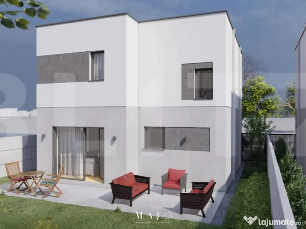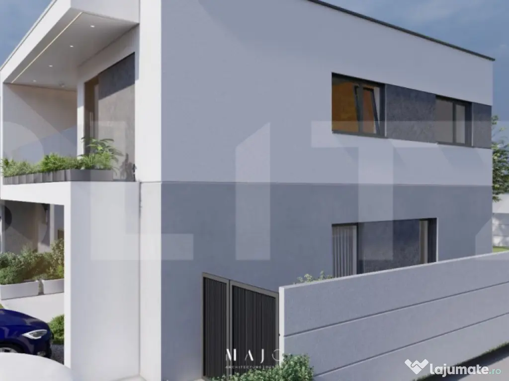 BLITZ oferă spre vânzare casă individuală modernă, situată la intrarea dinspre Timișoara în localitatea Săcălaz, în apropierea cartierului Primăverii. Imobilul are un regim de înălțime P+E, cu o suprafață construită de 140 mp, fiind amplasat pe un teren de 300 mp/casă. ???? Suprafață utilă: 100 mp ???? Terasă: 22 mp ???? Termen de livrare: 31.03.2026 Compartimentare: Parter: Hol de acces Living & Dining Bucătărie Baie Cameră tehnică Etaj: 3 dormitoare Baie Preț casă complet finisată: 169.000 € (139.669 € + TVA 21%) Specificații tehnice și finisaje: Zidărie din cărămidă portantă Porotherm Cemacon Izolație exterioară cu polistiren EPS 80 – 15 cm Încălzire în pardoseală Centrală termică pe gaz Tâmplărie PVC Salamander, geam tripan Acoperiș tip terasă cu membrană PVC și strat de pietriș Buget generos pentru finisaje: Obiecte sanitare baie: 10.000 lei Gresie: 150 lei/mp Faianță: 150 lei/mp Parchet: 150 lei/mp Utilități trase: apă, canalizare, gaz, curent electric Preț stadiu „la roșu” (tâmplărie PVC inclusă): 96.800 € (80.000 € + TVA) Include: Zidărie din cărămidă portantă Porotherm Cemacon Tâmplărie PVC Salamander, tripan Utilități în fața parcelei ✅ Se acceptă achiziția prin credit bancar. Cod ofertă / ID BLITZ: P146292 Id intern: P146292 Număr niveluri imobil: 1 Număr Băi: 2 Nr. locuri parcare: 2 Curent Apă Canalizare Gaz Climă