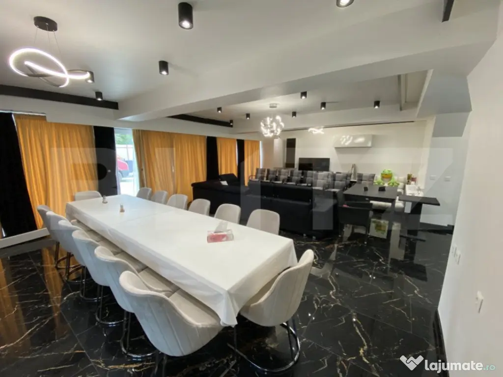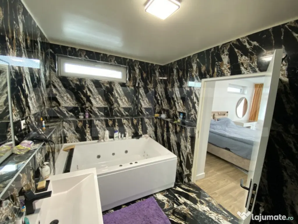 Blitz ofera spre vanzare casa individuală P+1E, anul construcției 2023, cu o suprafață utilă de 200 mp utili cu terasă deasupra casei cu o suprafață de 100 mp si 500 mp teren. Casa este situata intr-o zona linistita de case, dispune de toate utilitatile prezente, gaz, apa, curent. Casa este impartita in felul urmator : parter cu living si bucatarie, baie, birou. Etaj cu 3 dormitoare, dormitorul matrimonial cu baie proprie (cada cu hidromasaj, aeromasaj si cromoterapie), plus o baie situata intre dormitoare. Beneficiaza de sistem de supraveghere video. Este izolata exterior cu polistiren de 15 cm STO, etanseitate terasa exterioara 30cm STO (polistiren 15cm+15 cm incrucisat), tamplarie aluminium Welthaus. Marea majoritate a materialelor au fost aduse din Franta si sunt de o calitate superioara. Casa se vinde complet utilata si mobilata. Pentru mai multe detalii, contactati-ne cu incredere! Cod ofertă / ID BLITZ: P102299 Id intern: P102299 Număr niveluri imobil: 1 Număr Băi: 3 Nr. locuri parcare: 3 Curent Apă Gaz