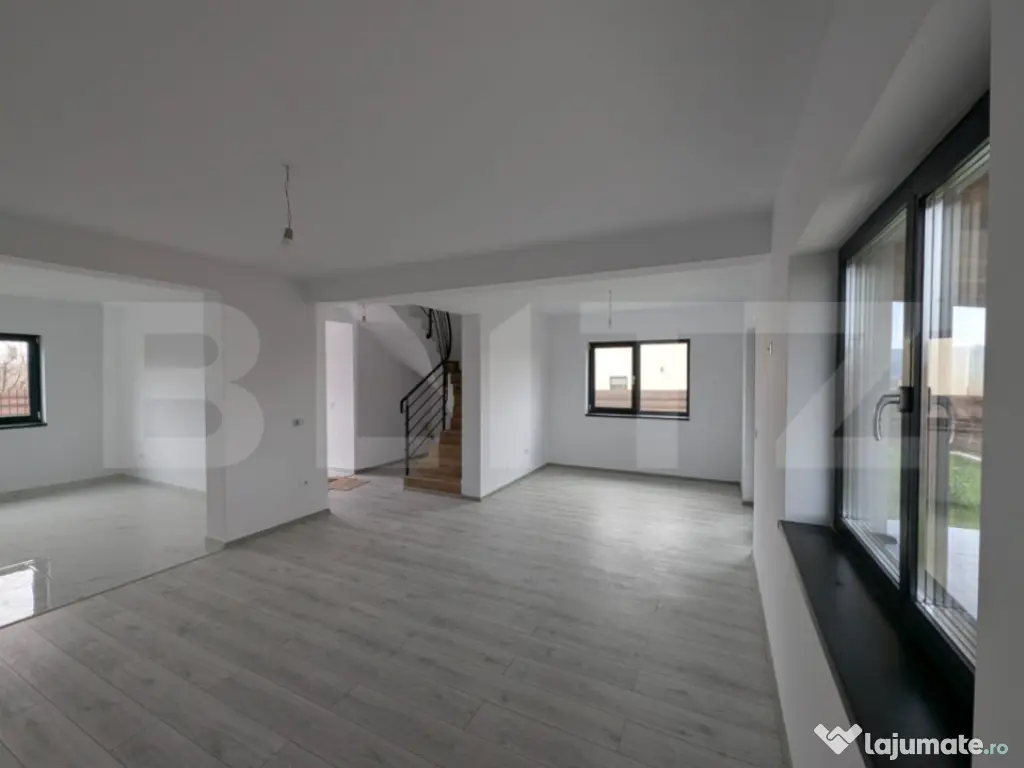 Blitz vă prezintă o locuinta moderna, ideala pentru o familie care isi doreste confort, spatiu bine organizat și o zona linistita. Casa are o suprafata utila de 110 m² si este amplasata pe un teren generos de 395 m², oferind intimitate si multiple posibilitati de amenajare. Parterul este conceput pentru a oferi un spatiu primitor si functional: Living spatios, luminos, cu acces direct catre terasa, perfect pentru momente de relaxare sau socializare. Bucatarie care poate fi amenajata inchisa sau deschisa, in functie de preferintele viitorului proprietar. Baie moderna, amenajata cu materiale de calitate. Etaj La etaj regasim zona dedicata odihnei: Trei dormitoare bine dimensionate, dintre care un dormitor dispune de balcon. Hol generos. Baie spațioasa, complet utilata. Proprietatea se remarca prin arhitectura moderna, compartimentarea eficienta și posibilitatea de personalizare după propriul stil. Curtea ofera suficient spatiu pentru gradina, loc de joaca sau zona de relaxare. Cod ofertă / ID BLITZ: P160069 Id intern: P160069 Număr niveluri imobil: 1 Număr Băi: 2 Nr. locuri parcare: 2 Curent Apă Gaz