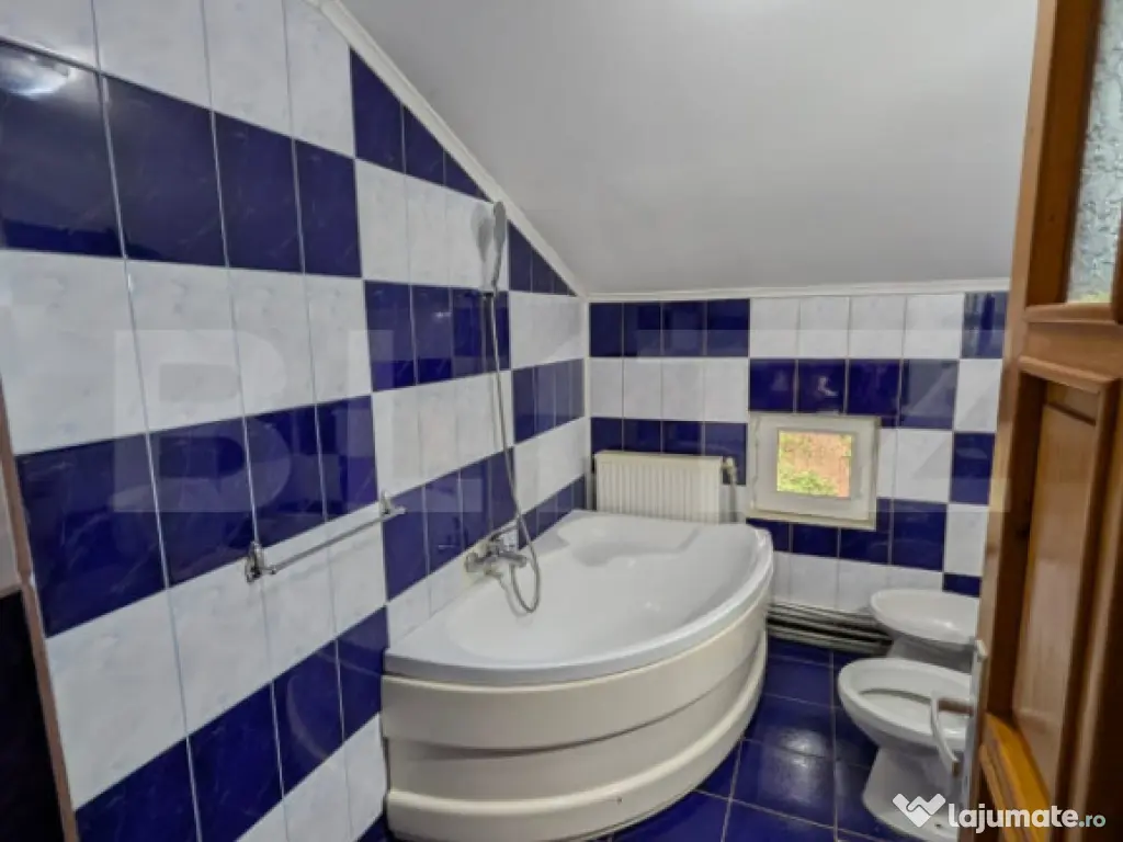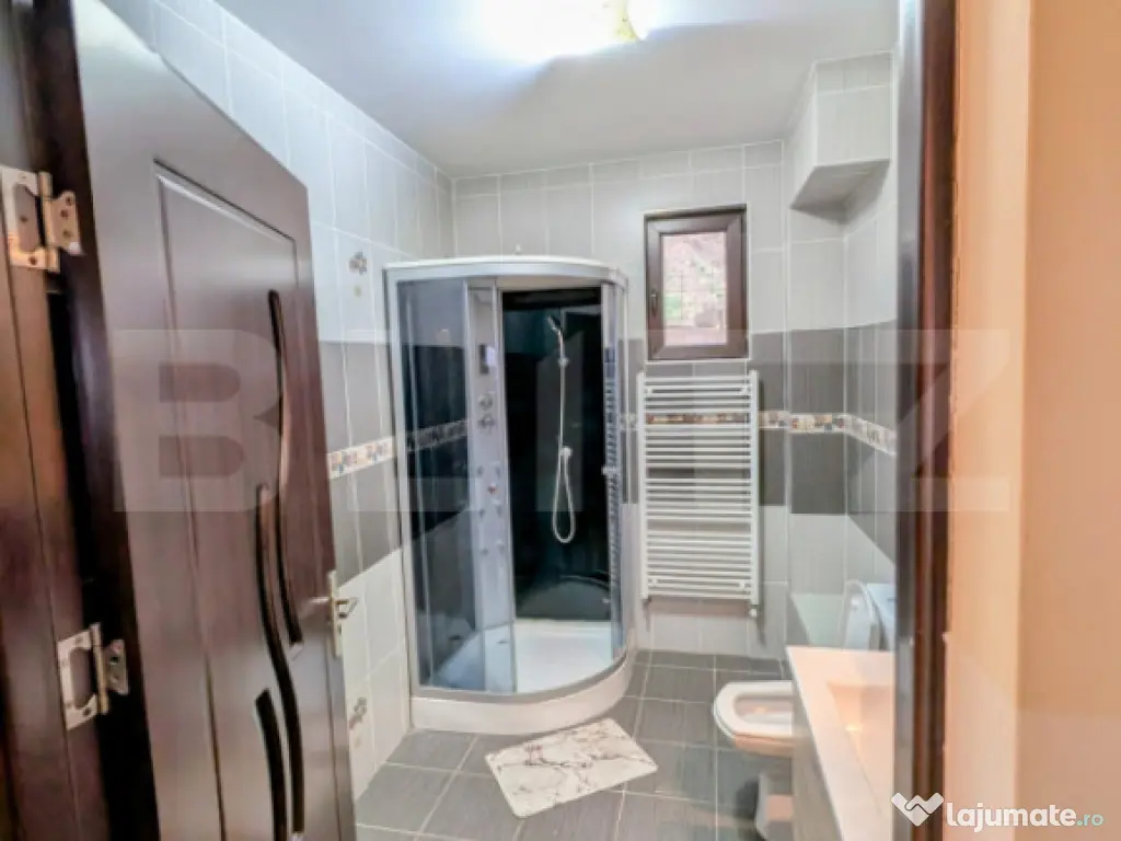 Blitz vă prezintă o casa spatioasa, cu regim de inaltime P+1 si suprafata utila de 140 m², perfecta pentru o familie care cauta confort si intimitate. Parter: -Living generos, ideal pentru momente relaxante sau întalniri cu prietenii; -Bucatarie separata, practica și luminoasa; -Baie moderna; -Camera amenajata ca spatiu de depozitare. Etaj: -3 dormitoare primitoare, dintre care 2 beneficiaza de balcon cu priveliste panoramica asupra orasului; -Hol spatios; -Baie complet utilata. Aceasta casa combina functionalitatea cu confortul, oferind spatii bine compartimentate, un loc ideal pentru cei care apreciaza intimitatea, dar și avantajele unei locatii accesibile. Cod ofertă / ID BLITZ: P159975 Id intern: P159975 Număr niveluri imobil: 1 Număr Băi: 2 Curent Apă Canalizare Gaz Climă