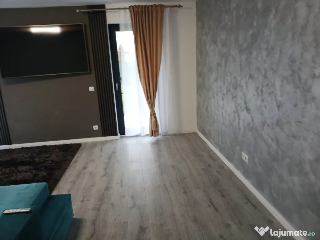 Agentia imobiliara Decor ofera spre vanzare casa P+M, 192 mp utili. P: bucatarie, living, baie, terasa. E: 3 dormitoare, 2 bai, terasa pe suprafata intregii case. Se vinde mobilata si utilata, totul este nou. Teren in suprafata de 5 ari. Gard, poarta cu telecomanda. Pret 200000 Euro + TVA , negociabil.