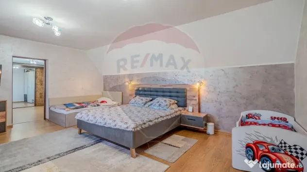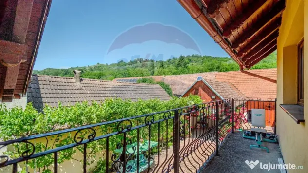 Garajul cu poarta electrica, terasa de vara acoperita dotata cu gratar, chiuveta, loc de servit masa si de relaxare, sura care pastreaza izul satului romanesc, beciul racoros, atelierul si afumatoarea , precum si curtea primitoare, intregesc tabloul atat de frumos al proprietatii.