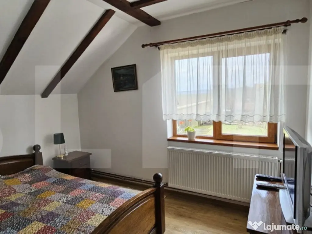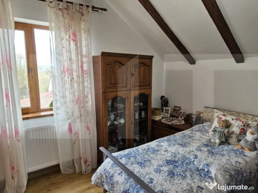 Casă spațioasă și confortabilă de vânzare în Sânționlunca, Covasna Descoperă această casă primitoare, situată într-o zonă liniștită, departe de zgomot, ideală pentru cei care își doresc confort și intimitate. ???? Suprafață utilă: 128 mp ???? Suprafață teren: 569 mp ???? Construită în 2008 – Construcție solidă din cărămidă, izolată termic Casa este dispusă pe două niveluri, având o compartimentare practică și modernă: ???? Parter: Living generos, cu șemineu pe lemne care alimentează sistemul de încălzire Bucătărie complet utilată Hol spațios Baie cu duș + baie de serviciu Casa scării ???? Etaj: 3 dormitoare luminoase Hol Baie elegant amenajată Terasă spațioasă, perfectă pentru relaxare ???? Curte generoasă cu multiple facilități: Garaj pentru mașină Clădire anexă care include: ✔️ Atelier de bricolaj ✔️ Depozit pentru lemne ✔️ Spații suplimentare de depozitare ???? Utilități: ✔️ Apă de rețea + fântână proprie ✔️ Curent electric ✔️ Fosa septică (posibilitate de racordare la canalizare, disponibilă la poartă) ????️ Se vinde parțial mobilată (discutabil) ???? Locație excelentă: Casă situată într-o zonă foarte bună, oferind liniște și aer curat, perfectă pentru familii sau pentru cei care doresc să se retragă din agitația urbană. ???? Pentru mai multe detalii și vizionări, contactează-ne acum! Cod ofertă / ID BLITZ: P143165 Id intern: P143165 Număr niveluri imobil: 1 Număr Băi: 3 Curent Apă