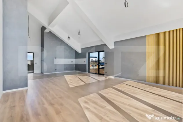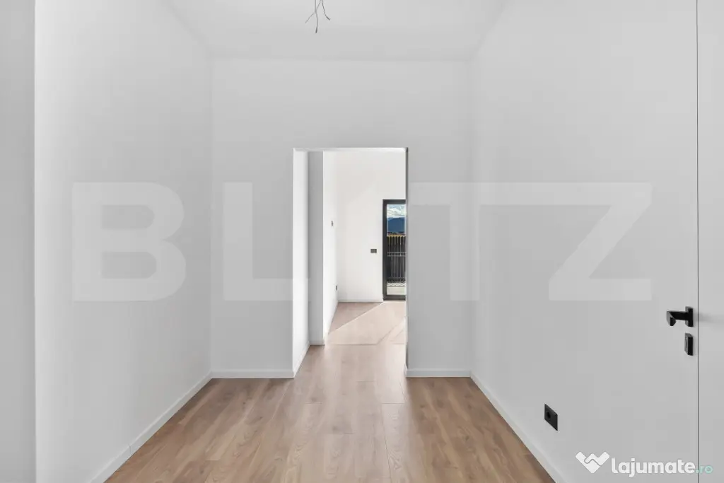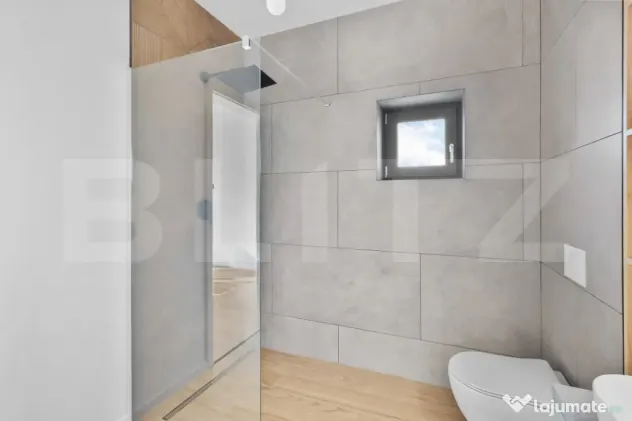 Blit propune spre vanzare casa cu 2 dormitoare (unul cu baie + dressing), 2 băi, living generos, tavan inalt, incalzire in pardoseala și terasă.Posibilitate amenajare al 3-lea dormitor.