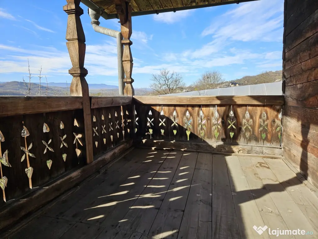 Vă propunem spre vânzare o casă din lemn, D+P+1E în localitatea Nănești, în zona de centru a localității, la 15 km de Sighetu- Marmației, într-o zonă verde și liniștită, departe de aglomerarea urbană, având și perspectiva dezvoltării unei mici afaceri în domeniul turismului, agro-turismului (casă de oaspeți, vilă pentru închiriere, etc). Casa este formată din D+P+1E, in suprafață totală, desfășurată de 293 mp. Demisolul este format din mai multe încăperi ce pot fi utilizate ca spații de producție sau depozite, în ideea începerii unei afaceri. De asemenea, tot la demisol este prevăzut și un spațiu pentru garaj, cu intrare direct din stradă. Parterul are 103 mp și este format din: bucătărie, living, baie, două camere, o cămară și casa scării. Etajul are de asemenea 103 mp si este format din: hol, două camere cu balcon fiecare și încă un balcon mare (terasă). Casa are nevoie de o restructurare, reabilitare, pentru a ajunge la forma si utilitatea pe care o dorește noul proprietar. Ca utilități are: curentul electric și apa, iar pentru reziduuri este de luat in calcul o fosă septică. Strada este asfaltată și accesul este foarte ușor. Terenul aferent este de 1500 mp și are posibilitatea de doua intrari
