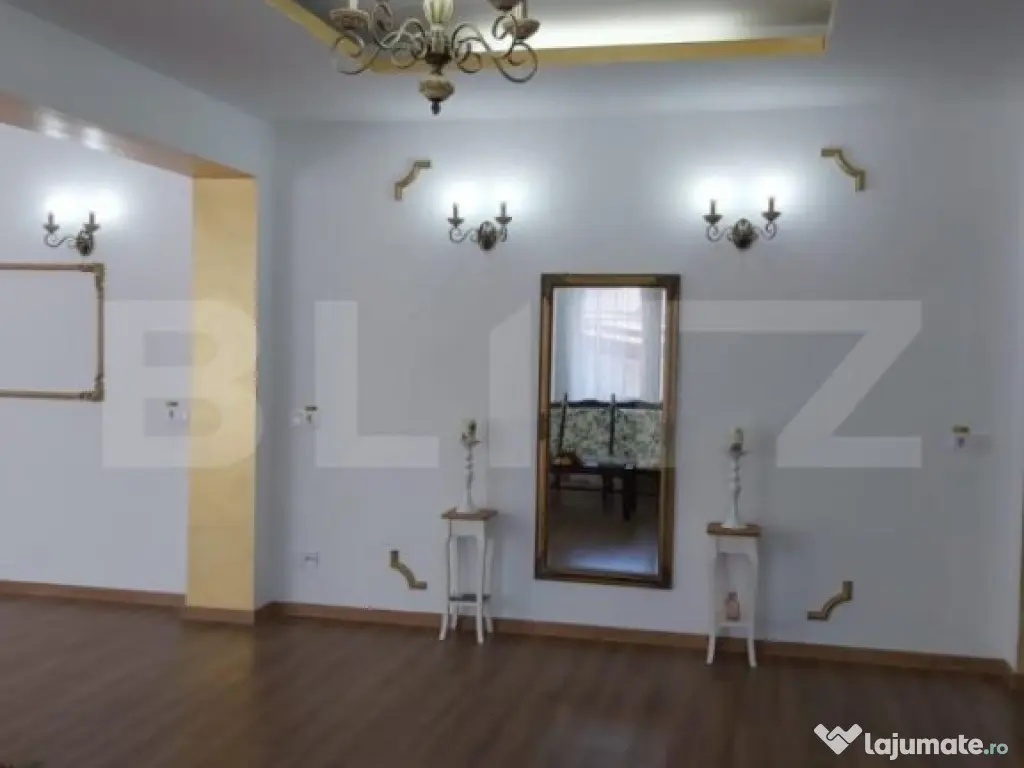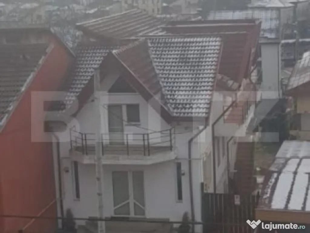 Blitz propune spre vanzare o casa de locuit si spatiu comercial cu regim de inaltime D+P+E, avand o suprafata utila de 265,4 mp si 527 mp de teren, pe strada Paltinis. Este proprietatea perfecta pentru a desfasura o activitate comerciala sau a inchiria spatiul comercial, din prisma vadului si in acelasi timp sa locuiesti intr o zona centrala a orasului. Casa a fost construita in anul 2010, cu fundatie, stalpi si grinzi din beton armat, zidarie portanta din caramida si este acoperita cu tigla. Terenu are o mica inclinatie ceea ce face ca demisolul format din living, bucatarie si o baie, sa fie la suprafata. Intregul parter al casei, cu suprafata utila de 102 mp, activeaza ca spatiu comercial, are doua intrari, in fata si in laterala, toate utilitatile sunt racordata separat de restul casei si este format dintr un open space, o camera cu balcon si doua grupuri sanitare. La etaj regasim un hol, 3 camere, toate cu balcon, una cu baie proprie, o alta baie pe hol si un spatiu de depozitare. Amprenta la sol este de 121 mp, terenul liber ramas fiind de 406mp iar suprafata desfasurata a casei este de 319 mp. Pentru si mai multe detalii va asteptam la vizionare! 0 % COMISION la cumparator! Cod ofertă / ID BLITZ: P146624 Id intern: P146624 Număr Băi: 5 Curent Apă Canalizare Gaz Climă