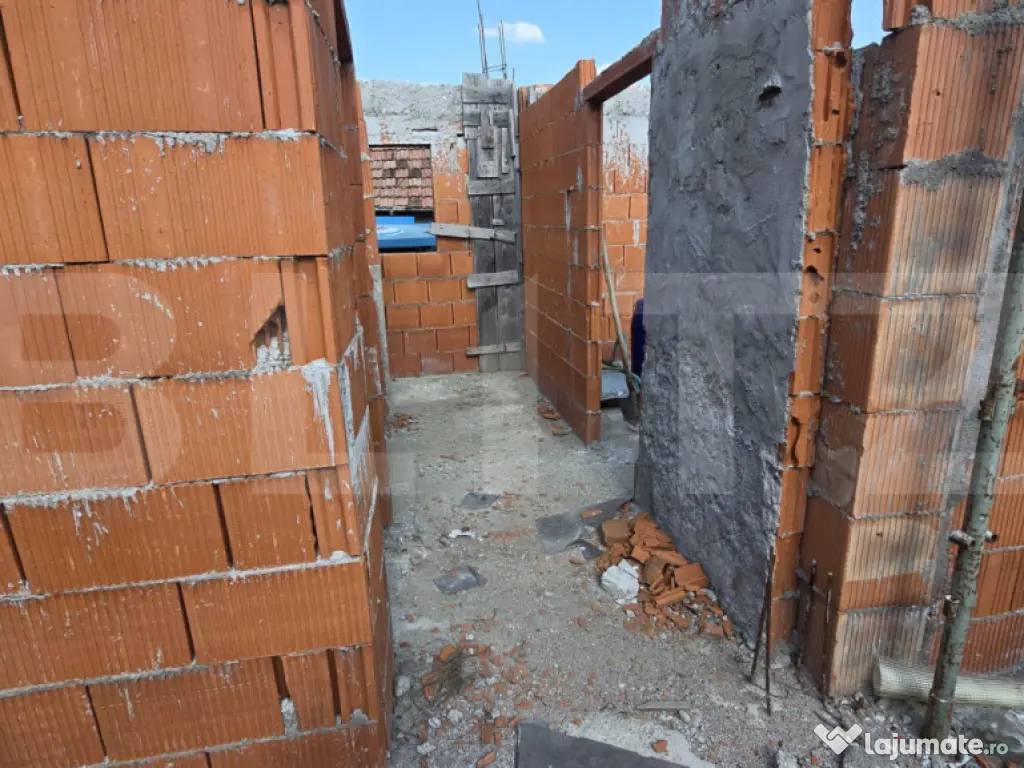 Se vinde o casă tip duplex modernă, aflată în fază de construcție, cu un design practic și spațios, situată la doar 5 minute de oraș.