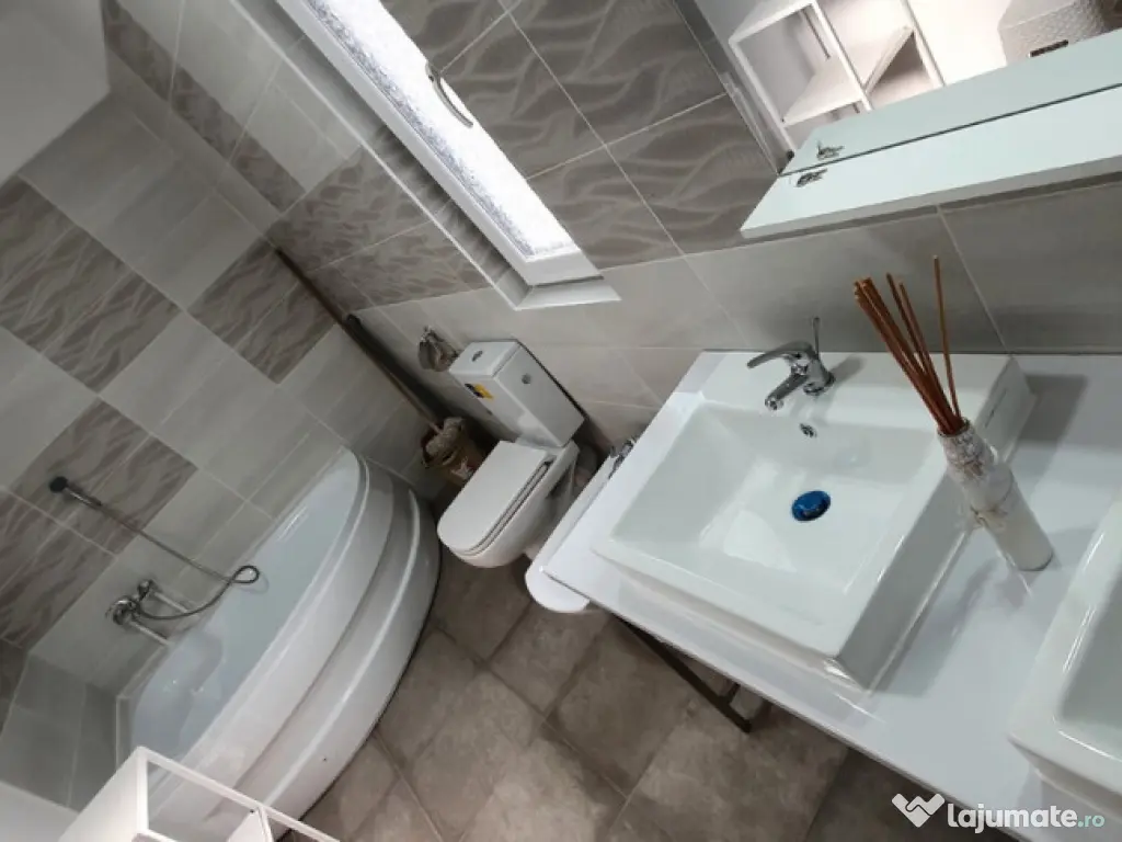 Casă duplex modernă | 5 camere | Mihai Bravu – Bariera Bucov | Curte + Parcare  Se oferă spre închiriere casă tip duplex P+E, situată în zona Mihai Bravu – Bariera Bucov, într-o zonă liniștită, cu acces rapid către oraș.  Proprietatea are o suprafață construită desfășurată de 168 mp și este amplasată pe un teren de 247 mp, oferind spațiu generos atât în interior, cât și în exterior.  CompartimentareParter   living spațios bucătărie baie hol și casa scării Etaj   dormitor matrimonial cu baie proprie două dormitoare baie Casa este complet mobilată și utilată, mobilierul și electrocasnicele fiind noi.   Dotări și beneficii  încălzire în pardoseală cu termostat în fiecare cameră pompă de căldură – costuri reduse de întreținere apă și canalizare gratuite curte pavată parcare pentru 2 autoturisme zonă pentru grătar Locuința este ideală pentru familii sau persoane care își doresc confort, spațiu și liniște, într-o zonă bine conectată la oraș. Locuința este disponibilă pentru închiriere pe termen lung, fiind ideală pentru o familie sau persoane care își doresc stabilitate și confort.  Preț închiriere: 3.700 lei / lună Precizati ca ati vazut oferta cu ID-ul: 4541 Număr niveluri imobil: 1 Număr Băi: 3
