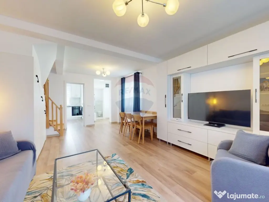 Se oferă spre închiriere duplex modern, situat într-o zonă liniștită. Imobilul este complet nou, recent finalizat, amenajat cu materiale de calitate și gata de folosit imediat. Compartimentarea este practică, ideală pentru confort și funcționalitate. Proprietatea se închiriază exact cum apare în turul virtual și în poze.