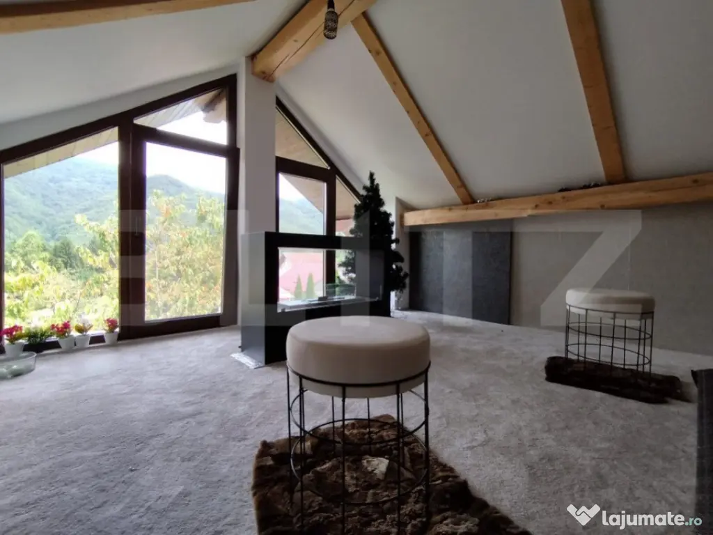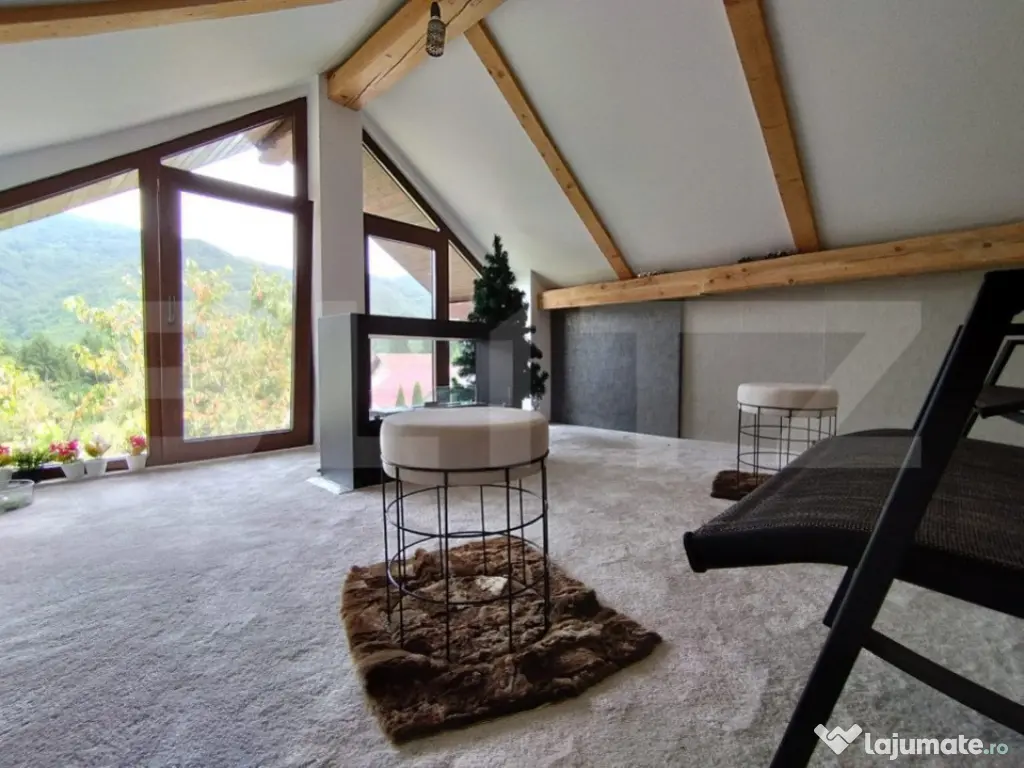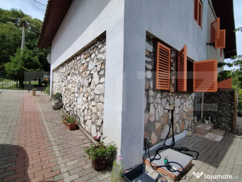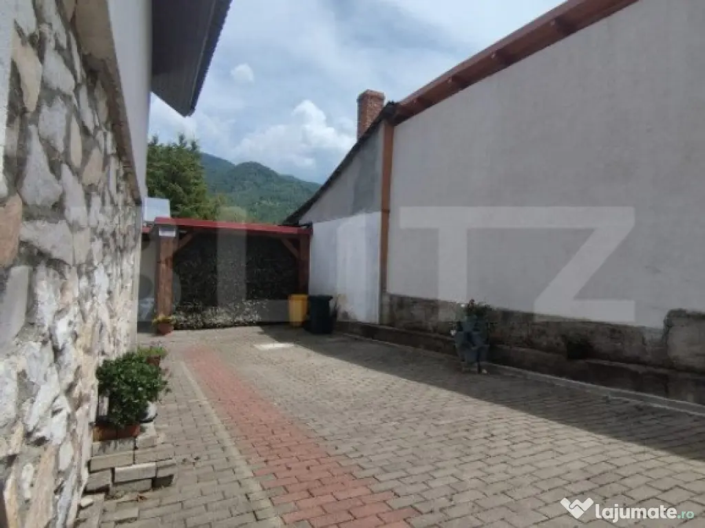 Imaginează-ți o dimineață liniștită în inima munților, la Poiana Mărului. Soarele abia răsare peste vârfurile împădurite, iar aerul curat îți umple plămânii. În acest cadru de vis, se află o casă duplex, construită cu grijă pe un teren de 440 mp, care te invită să evadezi din agitația orașului. Ușa deschisa iti dezvaluie la parter, in ambele apartamente doua livinguri total diferite ca si stil.- unul este cald, primitor, iar unul este gandit pentru seri prelungite intre prieteni galagiosi. Peretele din față este decorat cu o fereastră mare, prin care poți admira peisajul montan. Livingul este locul perfect pentru a te relaxa după o zi petrecută în natură. Alături, descoperi o baie modernă cu duș, unde te poți răcori după o plimbare lungă prin pădure. Dacă te îndrepți spre cealaltă jumătate a duplexului, vei găsi o baie dotată cu o cadă cu hidromasaj, ideală pentru momentele de răsfăț. La etaj, în fiecare apartament, te așteaptă două dormitoare confortabile. Doua dintre dormitoare au acces direct la balconul exterior, unde poți savura o ceașcă de cafea în timp ce admiri priveliștea încântătoare. Baile cu duș de la etaj sunt la îndemână pentru a-ți începe ziua cu energie. Podul - Un Refugiu Călduros Podul amenajat, accesibil dintr-o jumătate a casei, este un adevărat refugiu. Aici, serile de iarnă devin magice. Te așezi lângă șemineu, privești ninsoarea prin ferestrele mari și savurezi un pahar de vin alături de persoana dragă. Este locul ideal pentru a-ți încărca bateriile și a te reconecta cu cei apropiați. Structură Solidă și Modernă Structura casei este una solidă, fiecare detaliu fiind atent gândit și realizat pentru a oferi siguranță și confort. Fundația este din beton armat, parterul este construit din blocuri de marmură și beton, iar etajul din BCA. Podul este pe structură de lemn, izolat cu vată bazaltică, folie de aluminiu, OSB și rigips la interior. Între parter și etajul 1, structura este din dulapi de lemn masiv. Curtea - Un Colț de Rai În curte, fiecare jumătate a duplexului are propriul spațiu special. Prima parte dispune de o terasă acoperită, dotată cu un grătar construit, care poate fi transformat în afumătoare. Este locul ideal pentru seri de vară petrecute alături de prieteni și familie. Cealaltă parte a curții include un car-port și o zonă de depozitare, utilă pentru diverse echipamente. Facilități Moderne pentru Confort Maxim Într-o zonă montană unde vremea poate fi imprevizibilă, casa este echipată cu toate facilitățile necesare pentru a-ți oferi confort maxim: o centrală pe peleți de 35 kW cu control de la distanță, panouri fotovoltaice de 4 kW, panouri solare pentru apă caldă, un generator și un bazin subteran de 3000 l pentru stocarea apei. Fiecare parte a duplexului are propria fosă septică, asigurând astfel un mediu curat și sănătos. O Evadare Perfectă sau Oportunitate de Business Fie că îți dorești un loc de retragere unde să te bucuri de natură alături de prieteni și familie, fie că ești în căutarea unei investiții profitabile în regim hotelier, această casă duplex la Poiana Mărului te așteaptă să o descoperi. Petrece un weekend aici, lasă-te cucerit de peisajele montane, respiră aerul curat și simte magia locului. Poate vei decide că acesta este refugiul tău perfect sau afacerea pe care o căutai de mult timp. Cod ofertă / ID BLITZ: P129100 Id intern: P129100 Număr niveluri imobil: 1 Număr Băi: 4 Nr. locuri parcare: 4 Curent Apă
