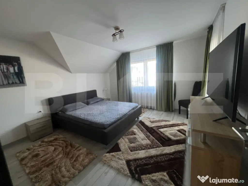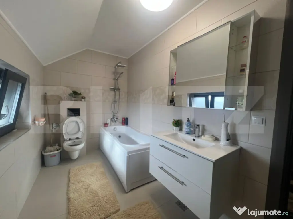 Blitz propune spre vânzare un duplex situat în Sângeorgiu de Mureș, în complexul Weekend Residence, cu acces din Târgu Mureș, pe lângă Complexul Weekend. Proprietatea se află într-o zonă rezidențială liniștită, cu acces facil către oraș, fără trafic aglomerat. Casa este amplasată pe un teren de 357 mp și are o suprafață utilă de 107 mp, la care se adaugă o terasă exterioară închisă cu geam termopan, cu o suprafață utilă de 32 mp. Orientarea sudică asigură lumină naturală și căldură pe tot parcursul zilei. Compartimentare: Parter: living, bucătărie, baie, hol și terasă acoperită Mansardă: 3 dormitoare, hol și baie Două dintre dormitoare beneficiază de acces la un balcon spațios. Imobilul se vinde complet mobilat și utilat, exact cum se prezintă în fotografii. Construcția este realizată pe fundație din beton armat, cu structură din cărămidă și acoperiș din țiglă. Casa dispune de geamuri termopan, izolație exterioară cu polistiren, iar un dormitor și terasa acoperită sunt dotate cu aer condiționat. Pentru mai multe detalii sau programarea unei vizionări, vă rugăm să ne contactați cu încredere. Cod ofertă / ID BLITZ: P163326 Id intern: P163326 Număr Băi: 2 Curent Apă Climă
