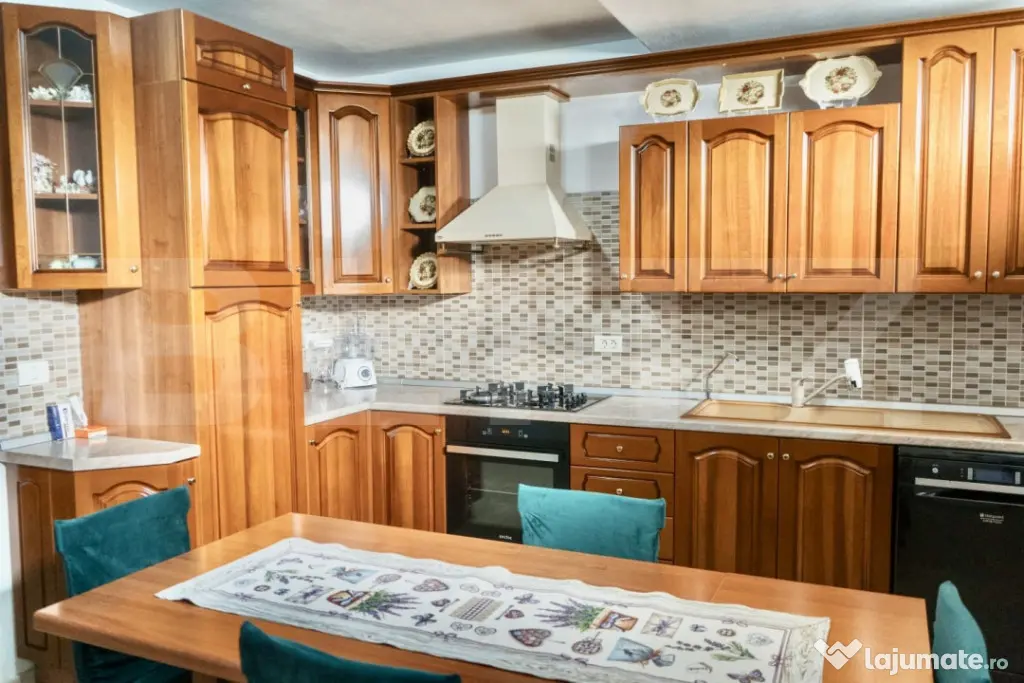 • bucătărie complet mobilată și utilată, parțial open space cu o sufragerie ce are ieșire în spate,