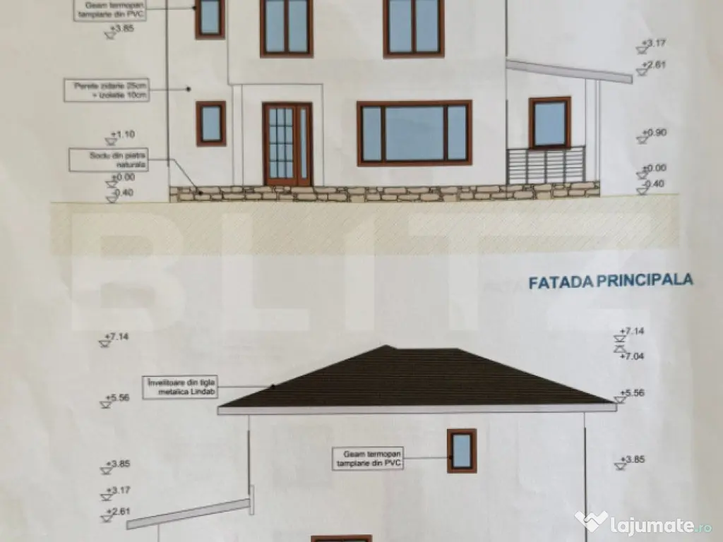 Blitz Imobilire va propune spre vanzare o casă deosebită de vânzare în Burdujeni, Suceava *doua case disponibile Vă prezentăm o locuință ideală pentru confortul întregii familii, situată într-o zonă liniștită din Burdujeni, în apropiere de stație de autobuz, supermarket, Benzinarie , școală și grădiniță * ÎN STADIU DE CONSTRUCTIE - se pot personaliza dupa bunul plac: interioarele camerelor, usile, pardoseala etc Suprafață utilă: 120 mp Suprafață teren: 320 mp Casa este compusă din • Living generos, ideal pentru momentele petrecute în familie • 3 dormitoare • Bucătărie spațioasă • 2 băi complet utilate • 2 holuri bine organizate • 1 camera tehnică • 1 dresing • 1 terasa • 1 pivnita Utilități & facilități: • Racordată la gaz • Centrală termică pe gaz • Canalizare (Fosa septica) • Apa curenta (Fantana) • Încălzire în pardoseală pentru un plus de confort • Locuință complet finisată, gata de mutat • Curte pavată și gazon amenajat, perfectă pentru relaxare sau activități în aer liber Proprietatea îmbină liniștea unei zone rezidențiale cu accesul rapid la facilitățile urbane, fiind ideală atât pentru familii cu copii, cât și pentru cei care caută un stil de viață confortabil. Cod ofertă / ID BLITZ: P150533 Id intern: P150533 Număr niveluri imobil: 1 Număr Băi: 2 Nr. locuri parcare: 2 Curent Apă